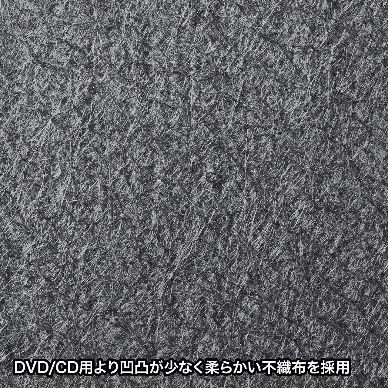 ブルーレイディスクの収納に対応した凹凸が少なく柔らかい不織布を採用しています。
