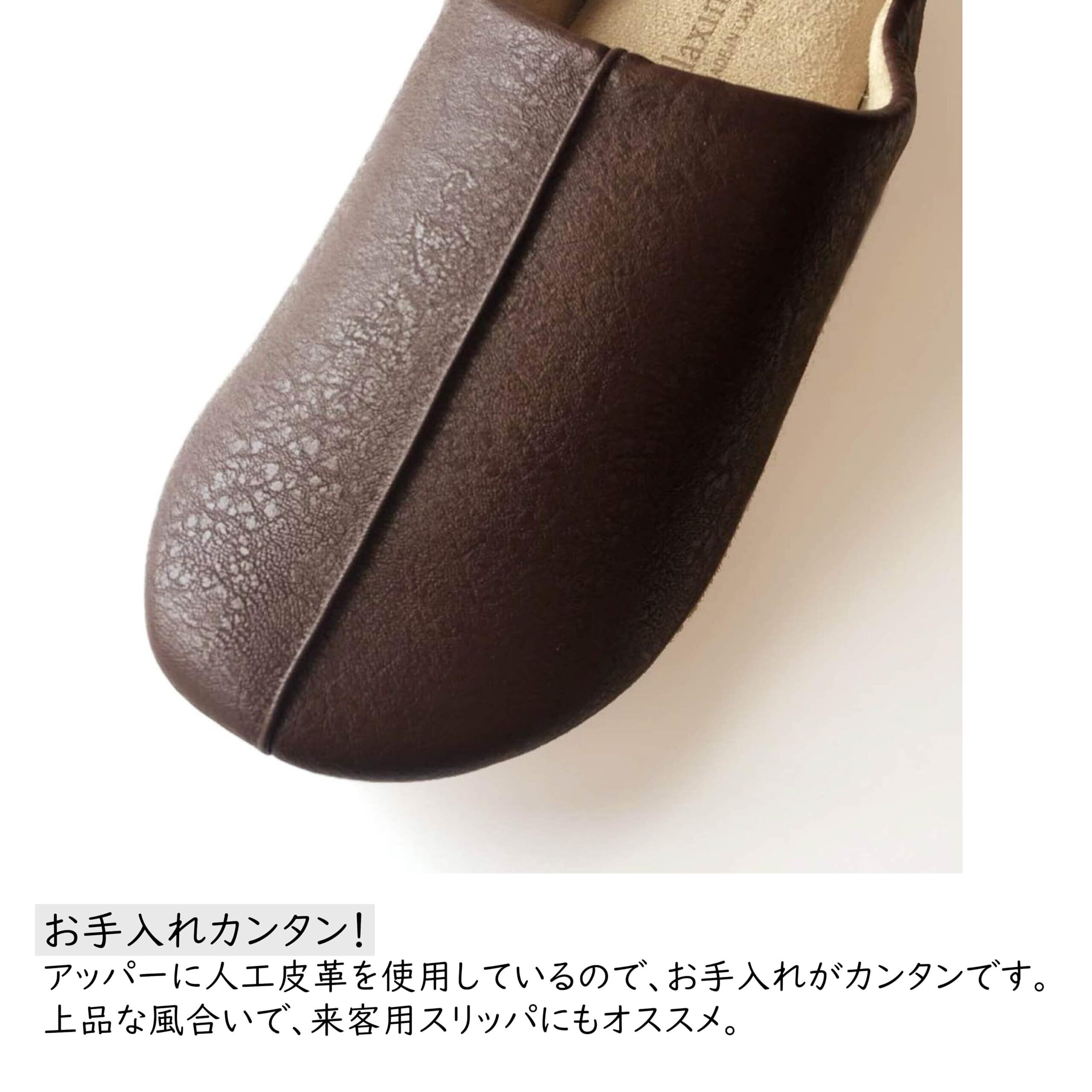 ニッポン スリッパ ルームシューズ relaxin'home フェイクレザー 室内 トイレ 来客用 メンズ レディース 24-27cm ブラウン やわらかな履き心地 300541