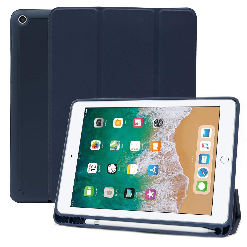 MS factory iPad 9.7 用 ケース 2018 2017 アイパッド 第5 第6世代 カバー Apple Pencil 収納 耐衝撃 スマートカバー ソフト TPU オートスリープ ペンシルホルダー ミッドナイトブルー 紺 IPD-5-S-HDR-NV