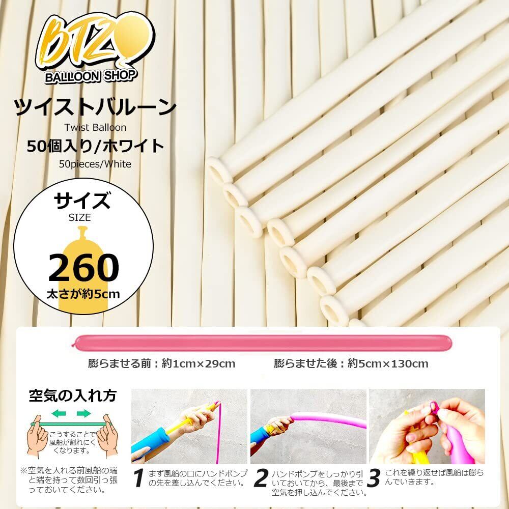 BTZO バルーンアート 風船 50本セット マジックバルーン ツイストバルーン ひねる風船 細長い風船 バルーン花束 飾り付け 誕生日会 イベント パーティー 結婚式 パーティー アソートホワイト