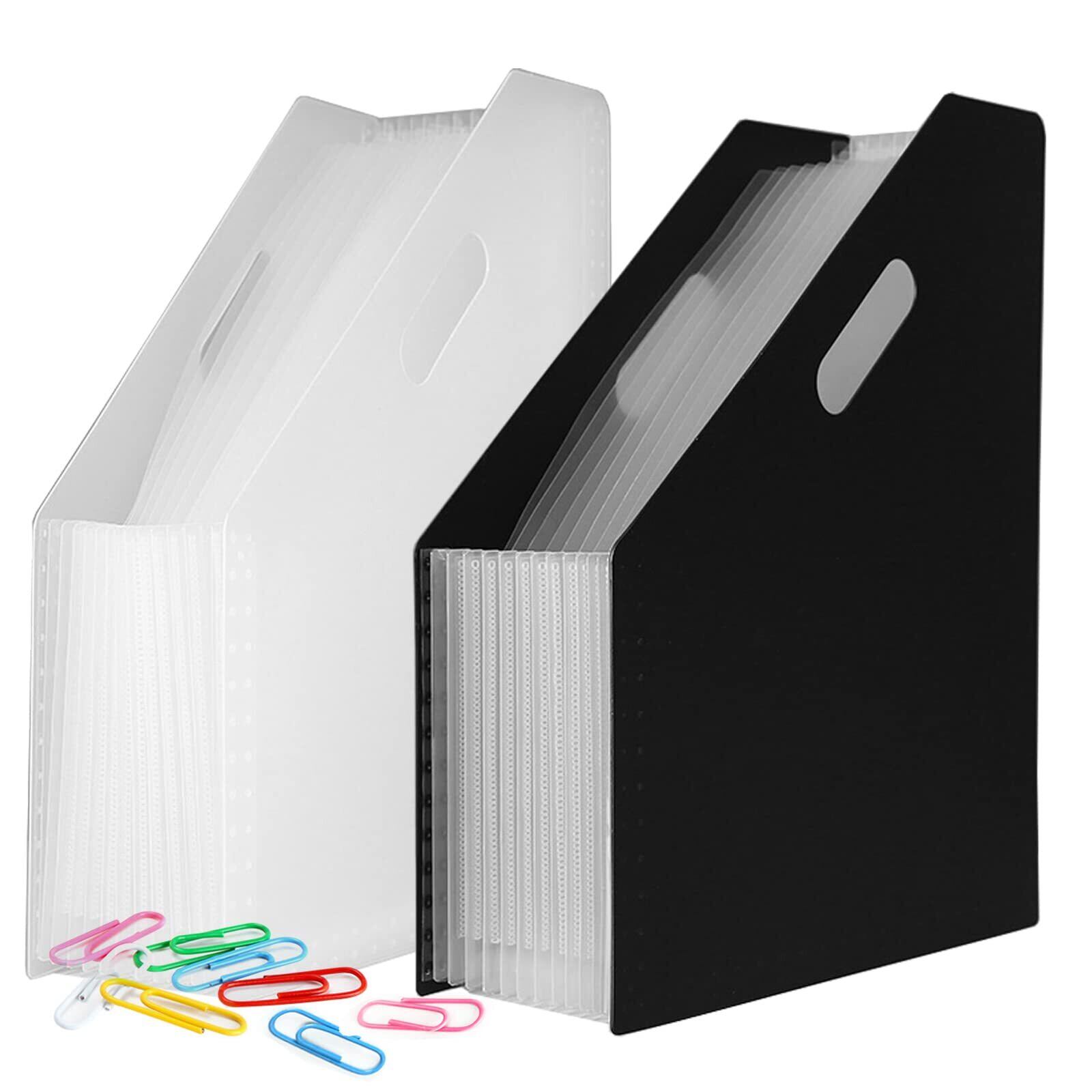 DY.2ten ドキュメントスタンド A4 13ポケット 2点セット ファイルボックス ドキュメントファイル 大容量 書類/ファイル 整理 収納 分類 便利 使いやすい 縦型 自立型 アコーディオン式 コンパクト 12仕切り 書類ケース 収納ボックス 黒 白 ペーパークリップ付き カラーラベル付き