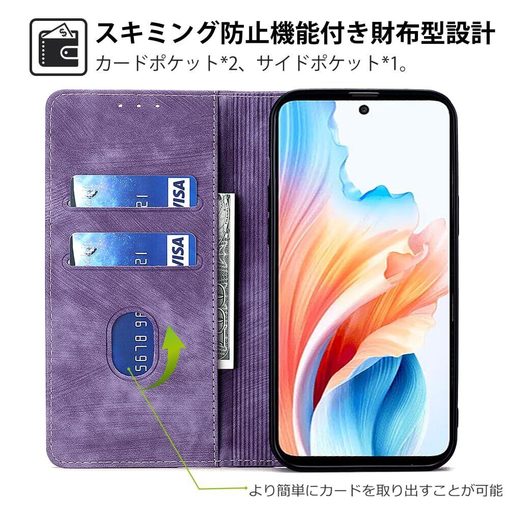 AiMaoo OPPO A79 5G 対応 ケース 防塵 耐衝撃 傷つけ防止 軽量 手作り PUレザー カード収納 RFID磁気防止 マグネット スタンド機能 ケース 手帳型 OPPO A79 5G 用 (パープル)