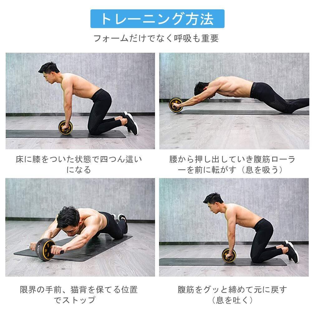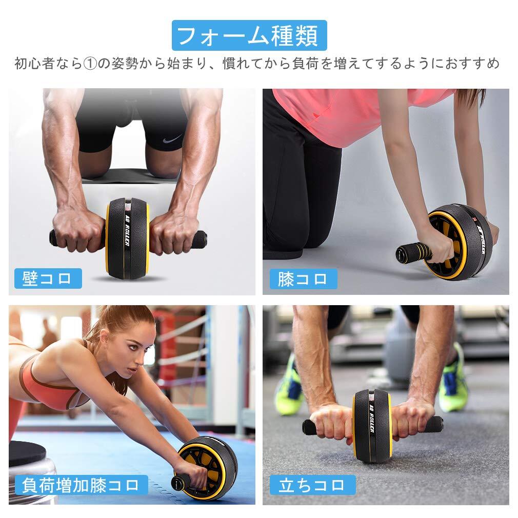 AUOPLUS 腹筋ローラー 膝マット付き アブホイール 腹筋 トレーニング器具 筋トレグッズ エクササイズローラー 体幹 ストレッチ ダイエット器具 アブローラー