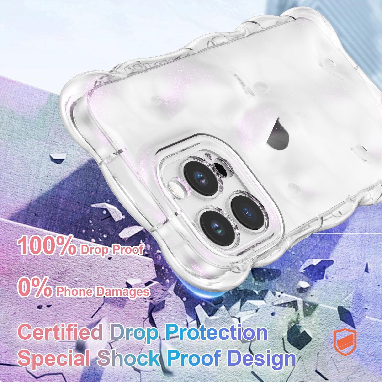 UEEBAI ケース 対応 iPhone 15 Pro 6.1 inch 用の ケース ウェーブデザイン スマホカバー 可愛い おしゃれケース カラフルケース TPUカバー カーリーウェーブケース 軽量 薄型 グリッター 光沢カバー 耐衝撃ケース 人気ケース 全面保護携带カバー -クリアピンク