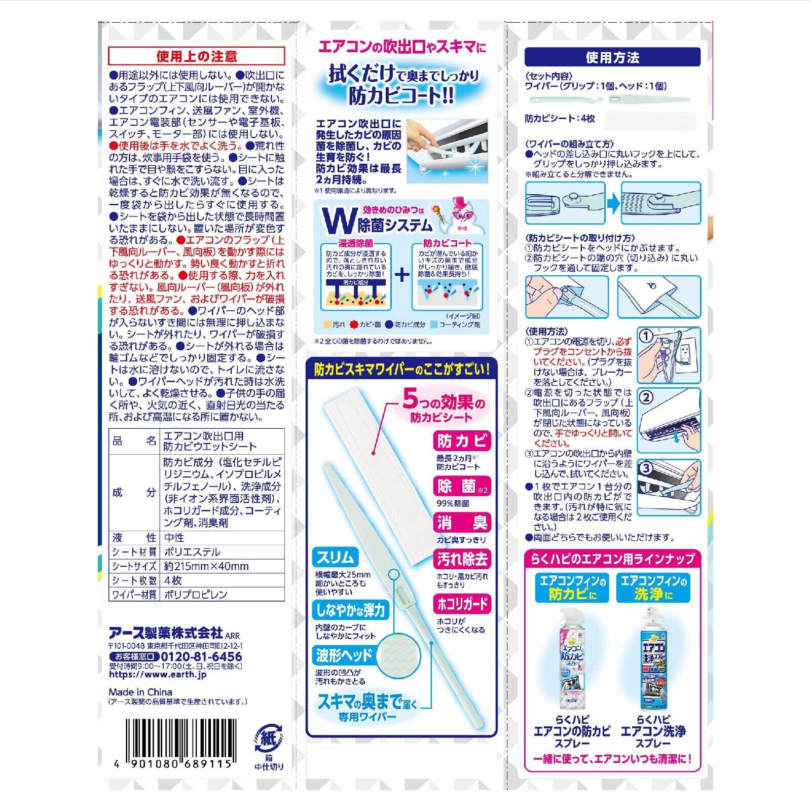 らくハピ エアコンの防カビ スキマワイパーセット ワイパー本体1個+シート4枚 エアコン クーラー 暖房 掃除 ブラシ カビ予防 大掃除