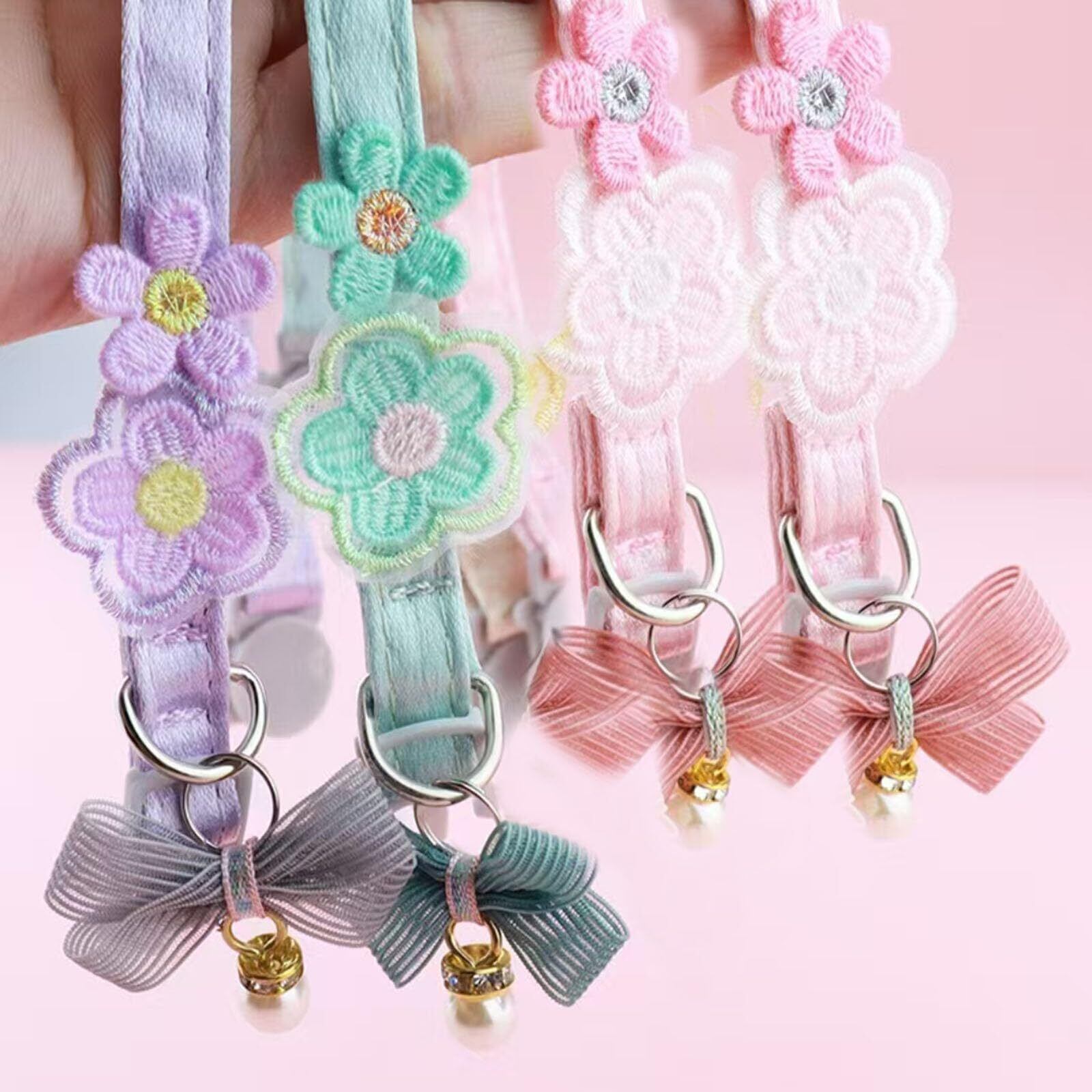 猫の首輪 首輪 レース 花柄 蝶結び 犬首輪 安全留め具 かわいいネックレス 可愛い 首飾り ペット用アクセサリー クリスマス 安全 調節可能 小型犬適用 猫用 犬用 パープル ピンク グリーン (パープル)