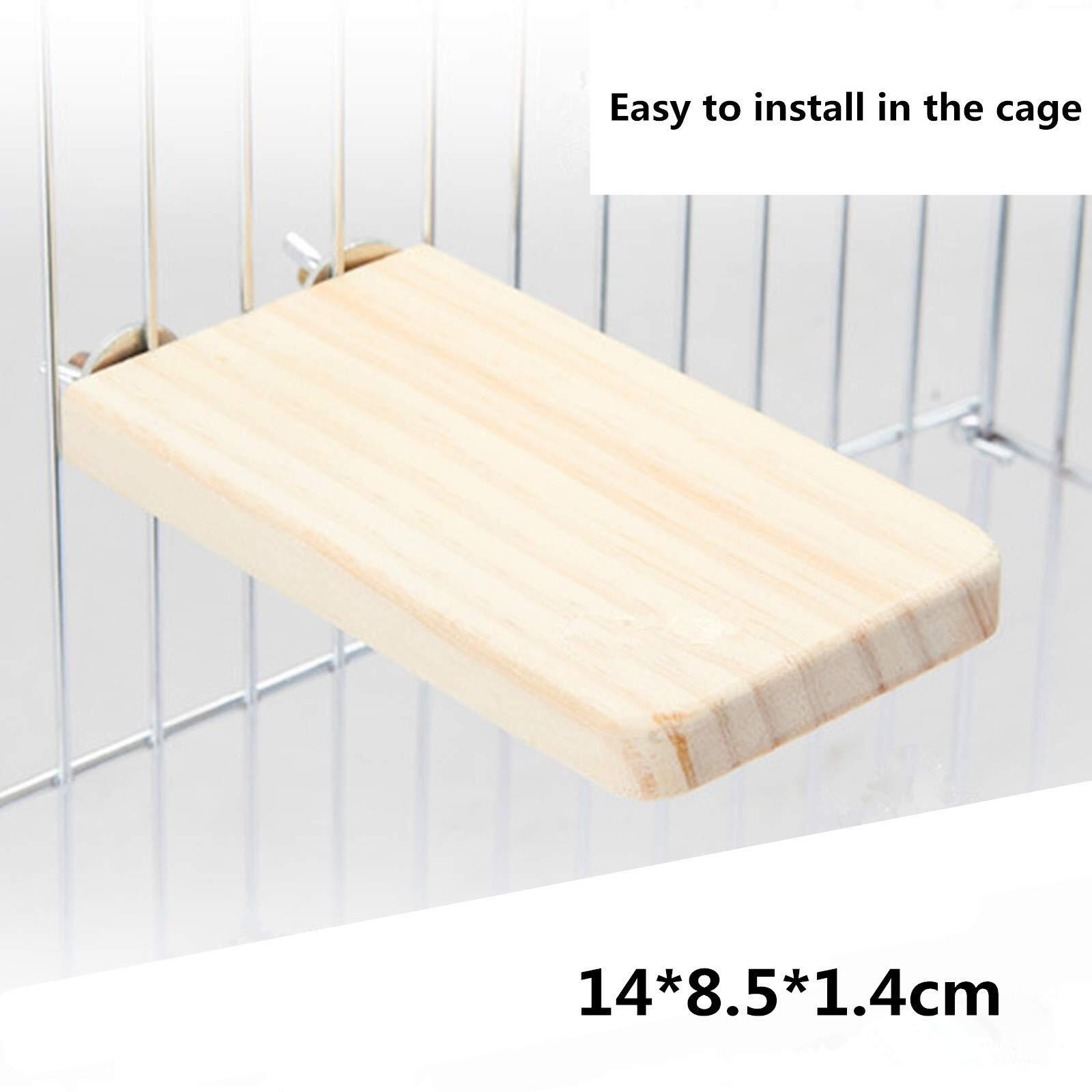 材質:ウッド、金属 サイズ:14*8.5*1.4cm 天然木で作られた長方形の踏み台です。染色していないため、小動物が遊んでも安心です。 二つのネジでケージにしっかり取り付けられます。安定感があり、小動物の休憩場所として最適です。 ハムスター、インコなど小動物や小鳥に適しています。