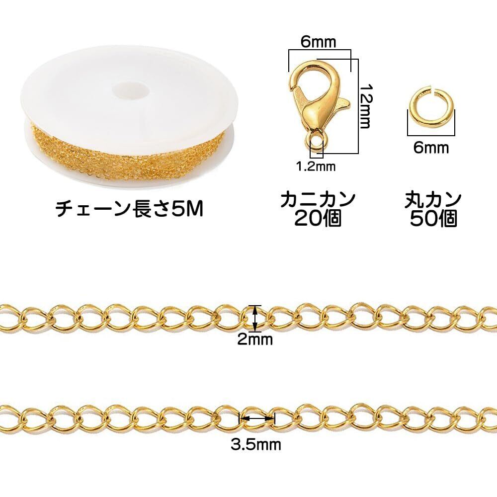 パッケージ内容:チェーン1巻き(全長5メートル)、丸カン50個、カニカン20個