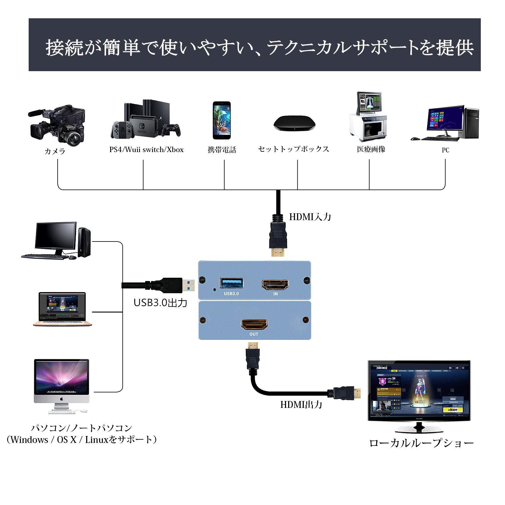 【より強い互換性】この1080P hdmiキャプチャは、Wii U、PS4、PS3、Xbox One、Xbox 360、Wii、任天堂スイッチ、DVD、カメラ、ZOSIセキュリティカメラ、DSLRなどのすべての1080P 720P hdmiデバイスと互換性があります。 セットトップボックスなど