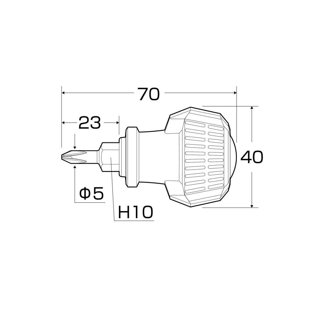 ●製品寸法:全長70mm、軸長23mm、軸径5mm丸軸、ボルスターH10mm、ハンドル最大径36mm