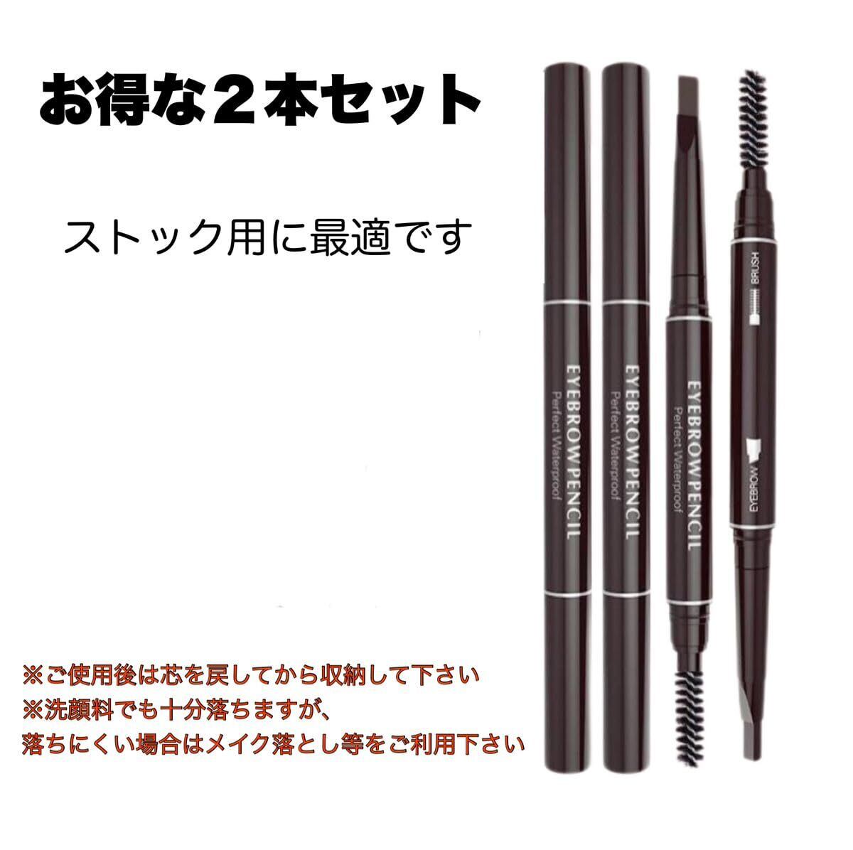 Chicalice アイブロウペンシル 繰り出し式 ブラシ 2本セット 眉書き 眉毛 ペンシル (ダークブラウン2本)