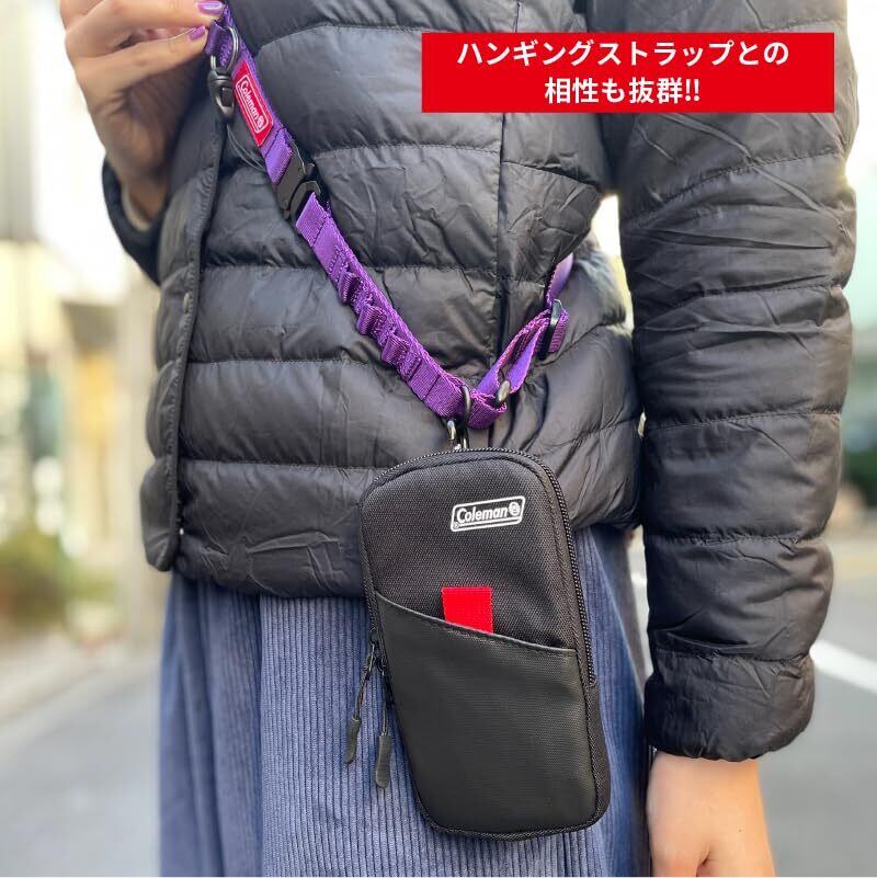 スマートフォンなどの収納に便利なColemanライセンスの薄型マルチポーチ。