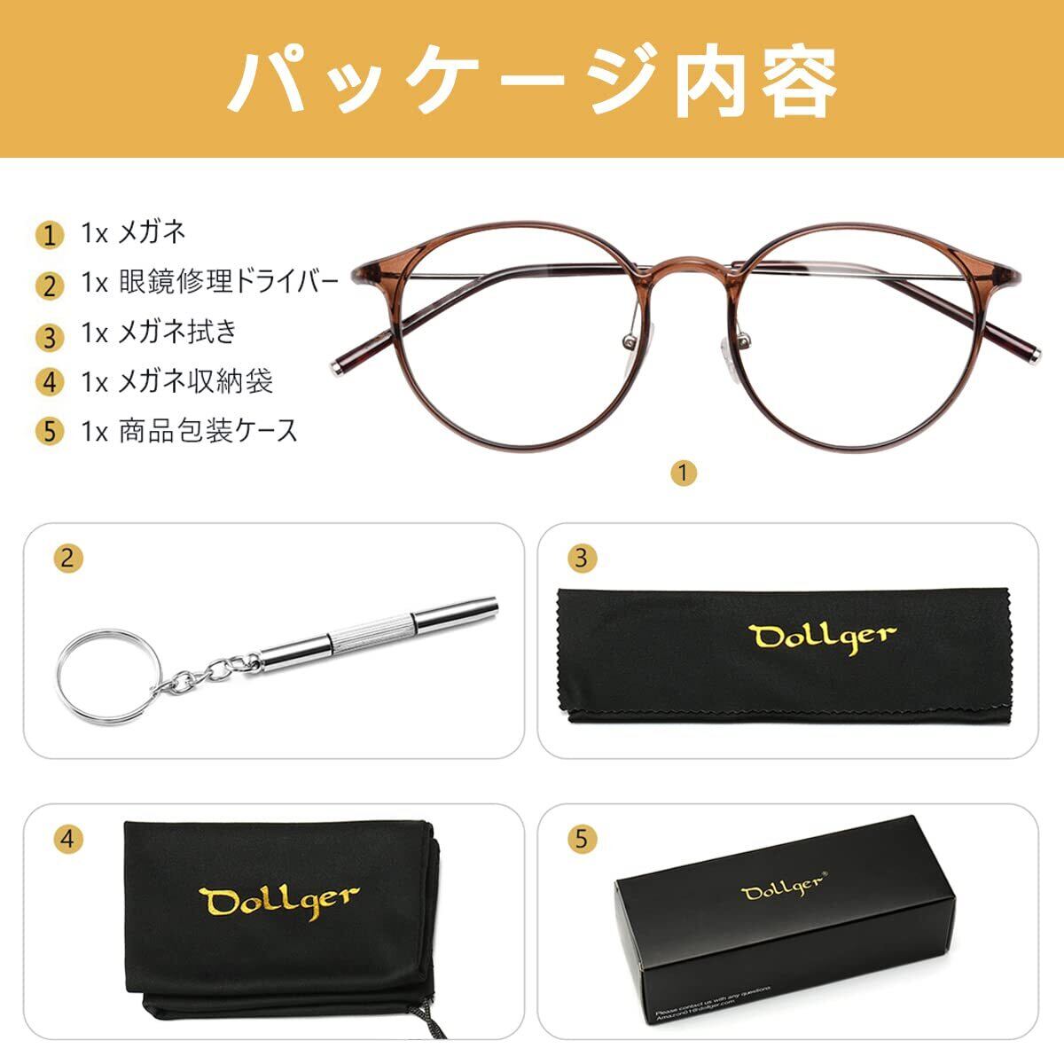 【ブルーライトカット・UV400保護】Dollgerのメガネは高品質のブルーライトカットの透明レンズを採用して、スマホ、パソコンやテレビなどのスクリーンからの目に有害なライトを遮断できます。UVカット率も99%に達成して、肌を老化させる原因と言われている紫外線をカットでき、紫外線防止対策になります。