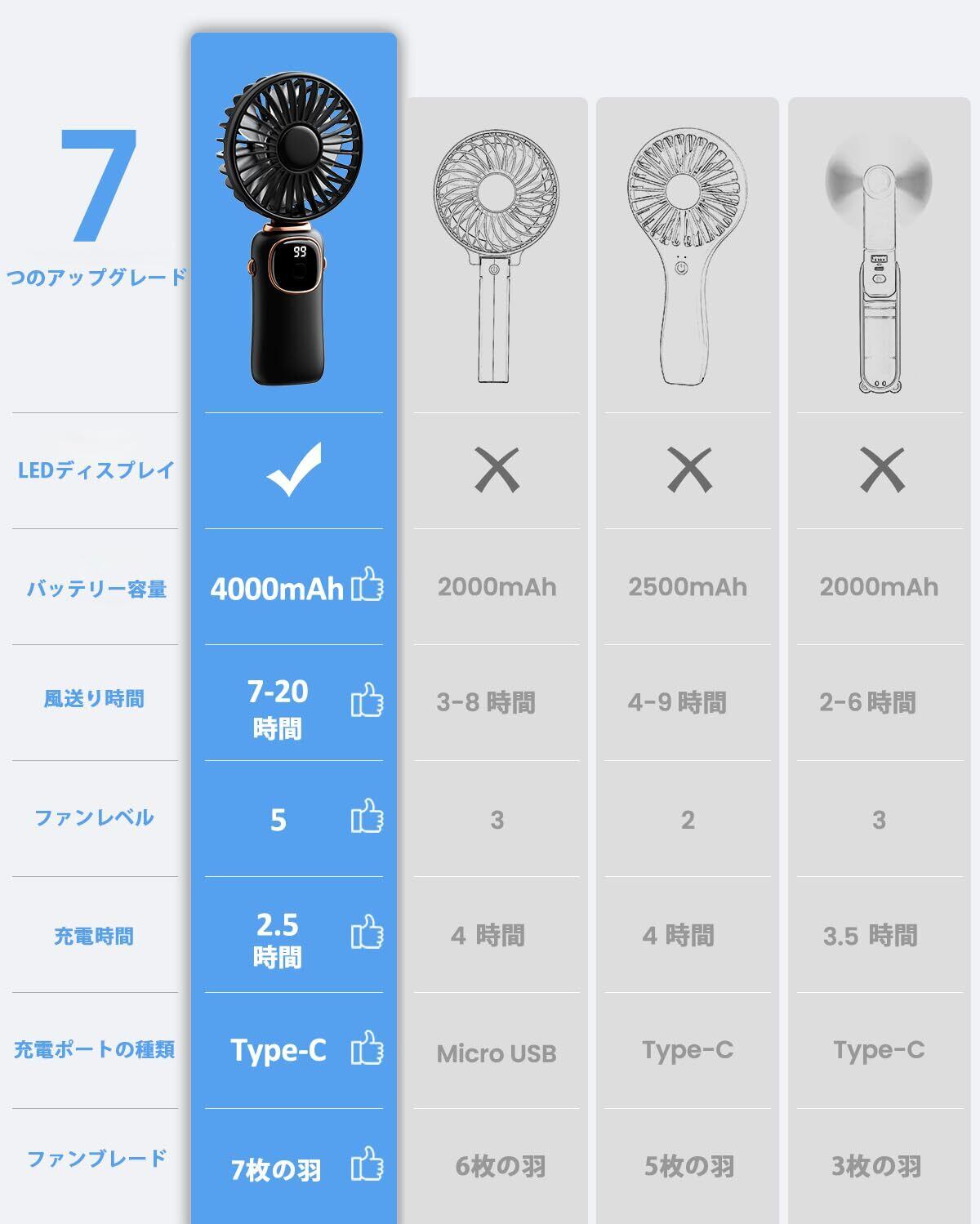 【2024 ハンディファン 5段階風量 LEDディスプレイ】coldSky ハンディファン 携帯扇風機 ハンディ卓上扇風機 手持ち扇風機 小型 静音 4000mAh 超強風 手持ち首掛け 卓上 扇風機Type-C充電 軽量 小型 持ち運び便利 熱中症対策み ストラップ付き(ブラック)