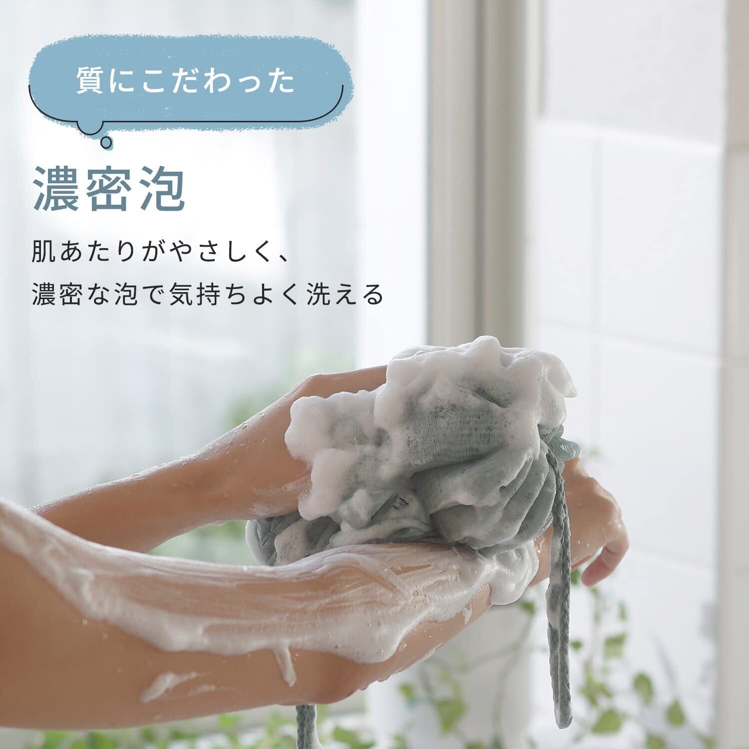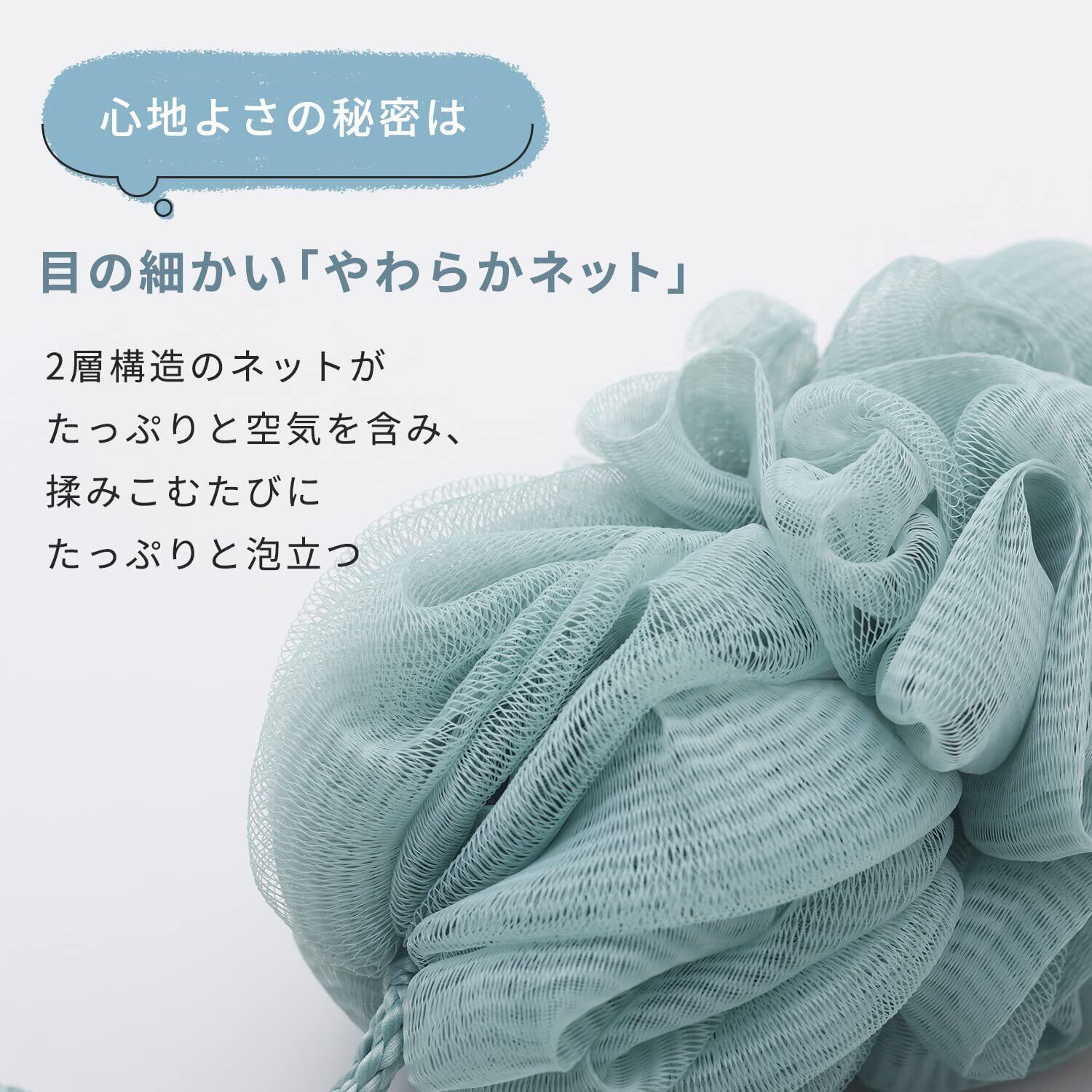 【少ない石鹸でもモコモコ泡に】ネット素材で泡立ちがよく、少ない石けんでも一瞬でモコモコの泡が作れます。簡単に泡立つので、お子様にもオススメ。石けんやボディソープの無駄使いを防げて、とってもエコなボディスポンジです。