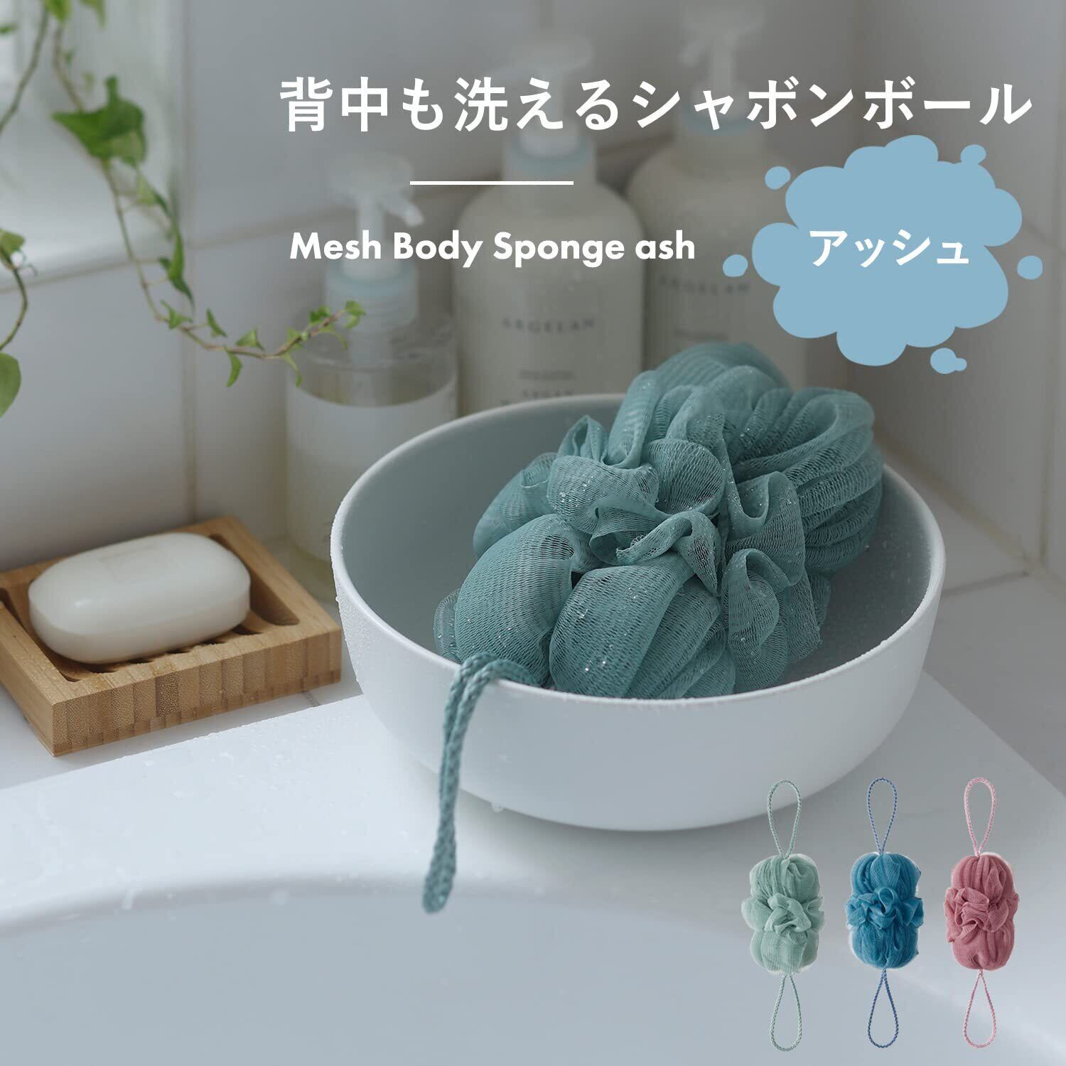 マーナ (marna) ボディスポンジ 背中も洗えるシャボンボール 3個セット (モスグリーン) 濃密な泡立ち ぐーんとのびる (体洗うタオル/お風呂 タオル) やわらかめ R548G