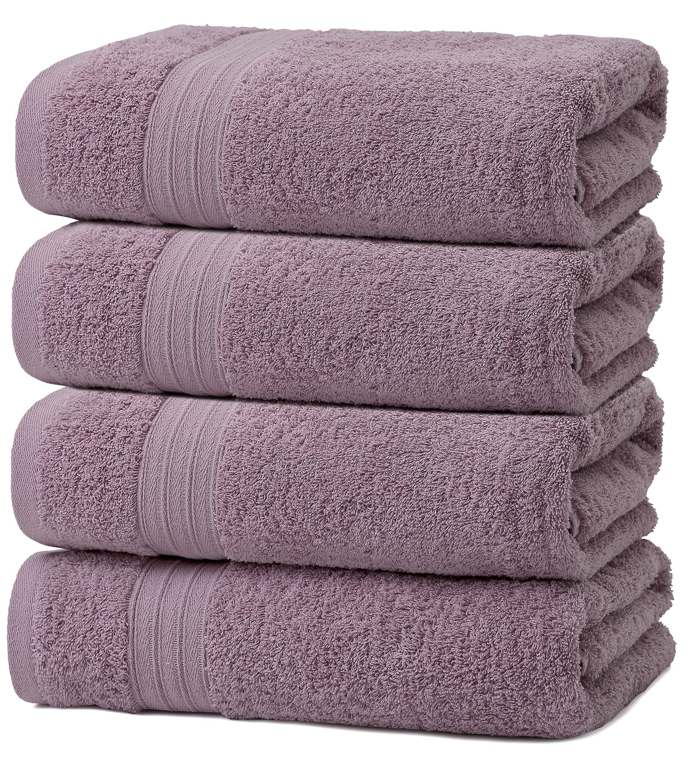 100% 綿 4枚 ホテルスタイル バスタオル セット タオル コットン 人気 ふわふわ の肌触り 吸水 (バスタオル アッシュパープル)