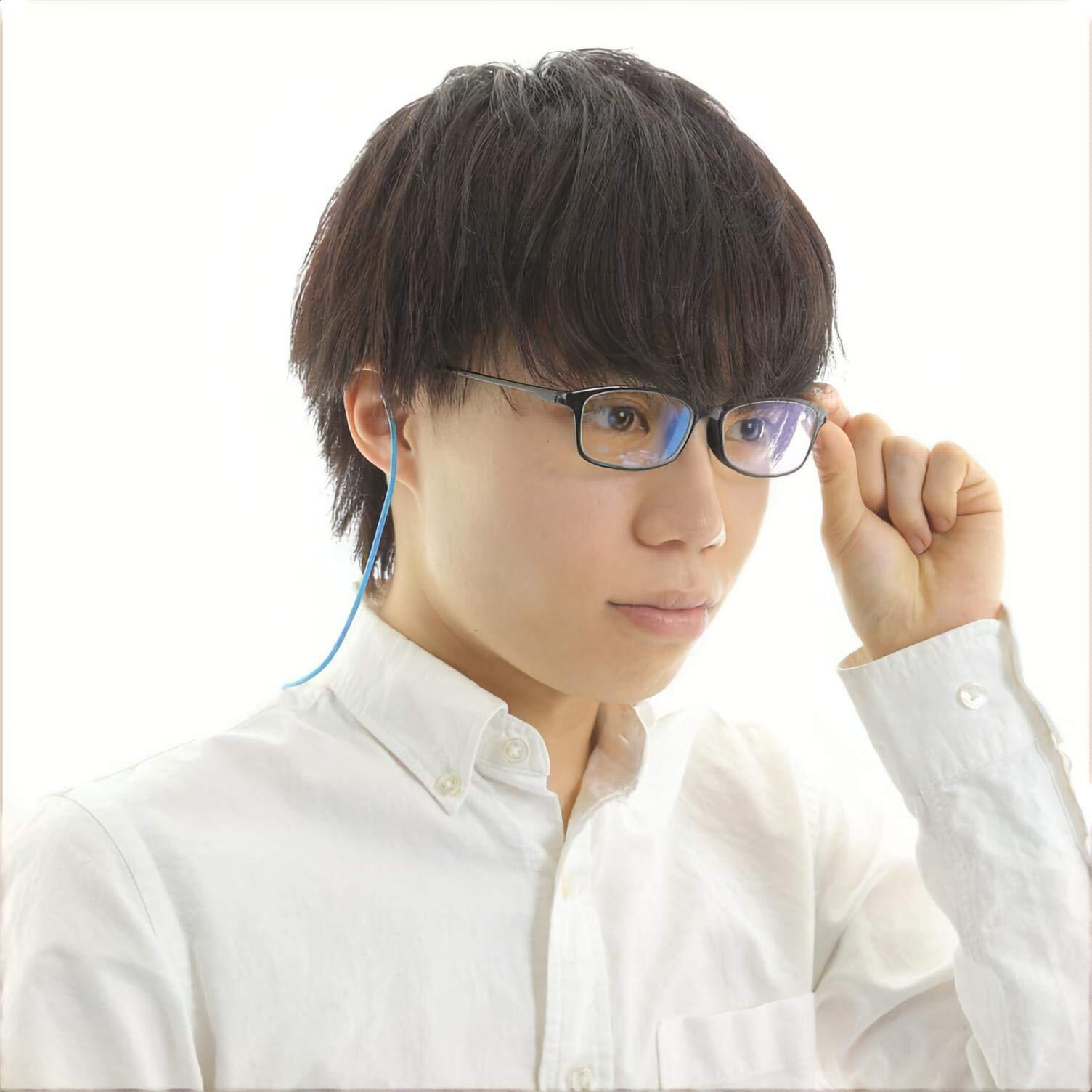 取り付けは簡単:輪っかをめがねのつるに通してしぼるだけ