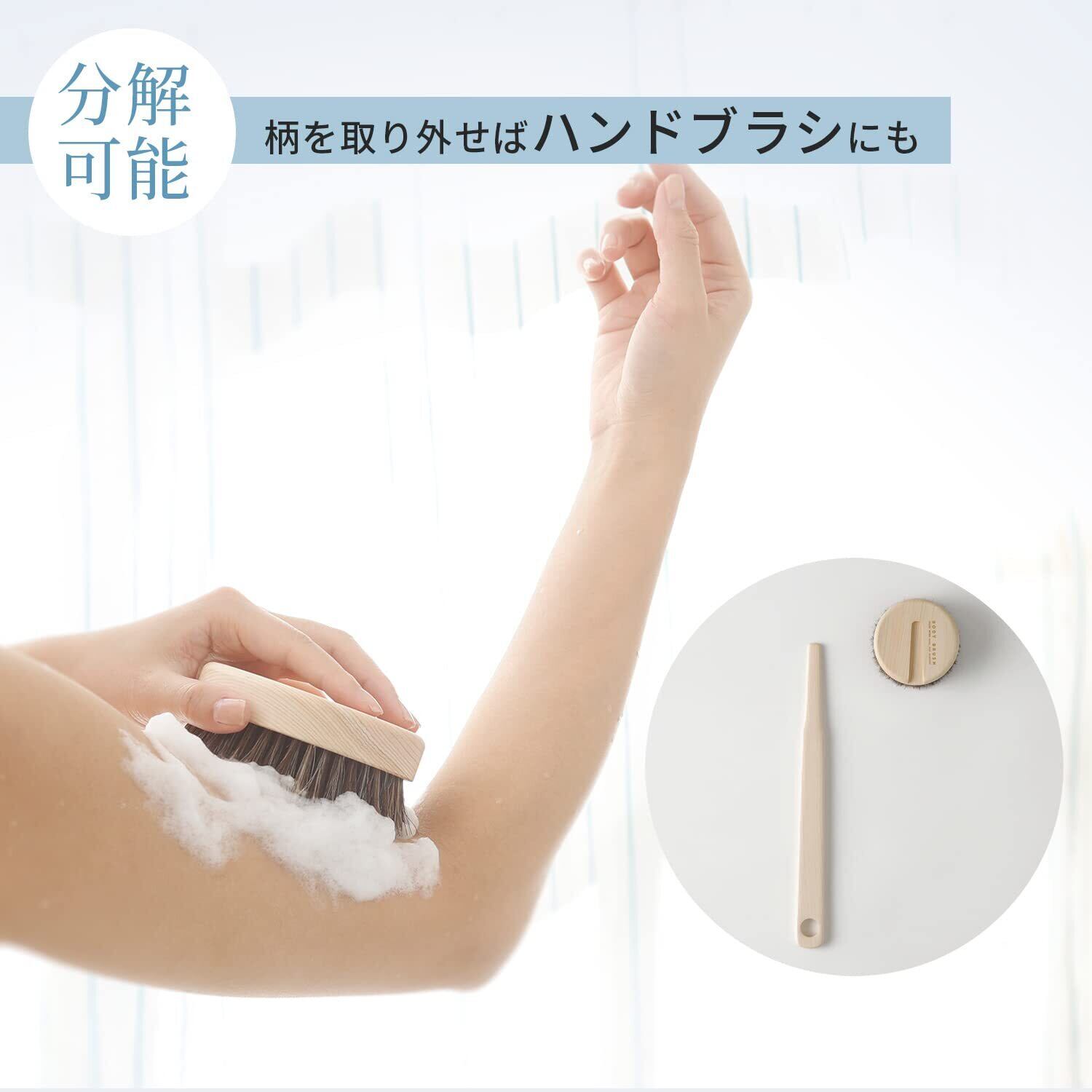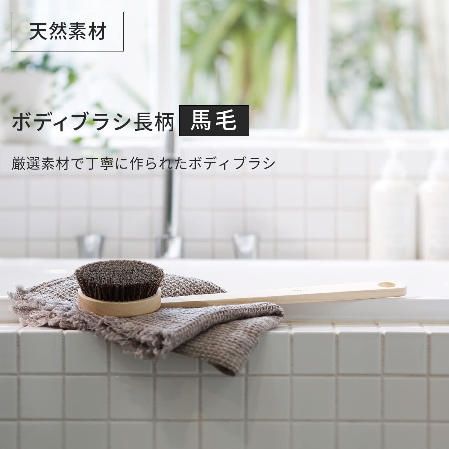 マーナ (marna) ひのきボディブラシ 長柄 ( 馬毛 / 柄付き / 日本製 ) 背中 ブラシ (背中洗いやすい / 取り外し可能) ボディーブラシ B662