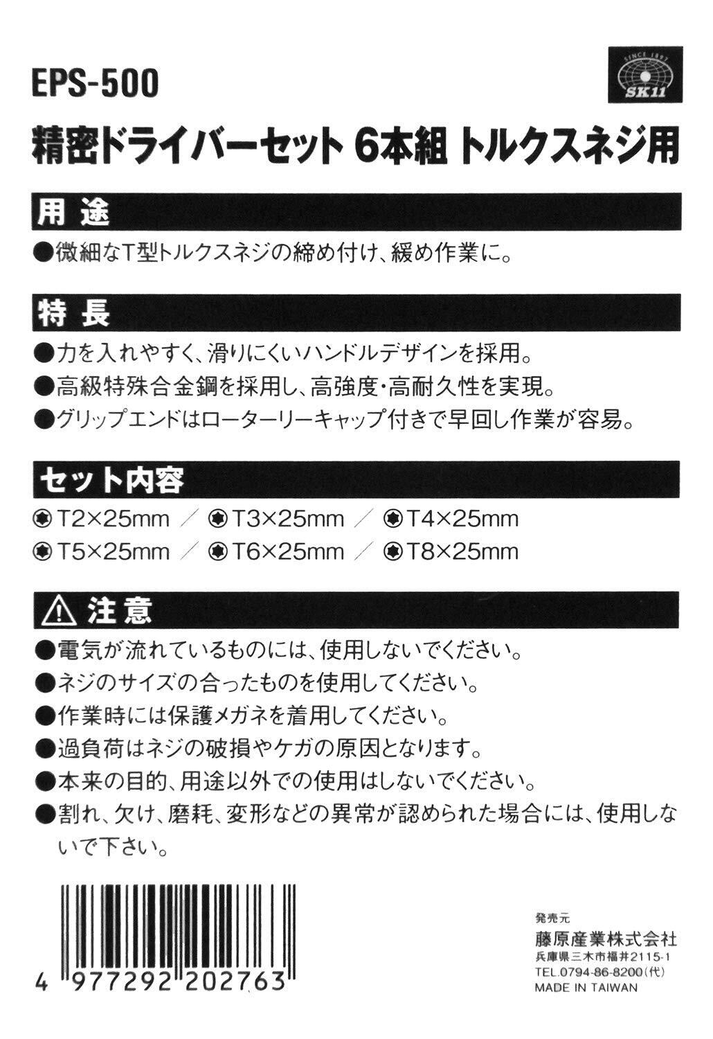 SK11(エスケー11) 精密トルクスドライバーセット トルクスネジ用 6本組 EPS-500