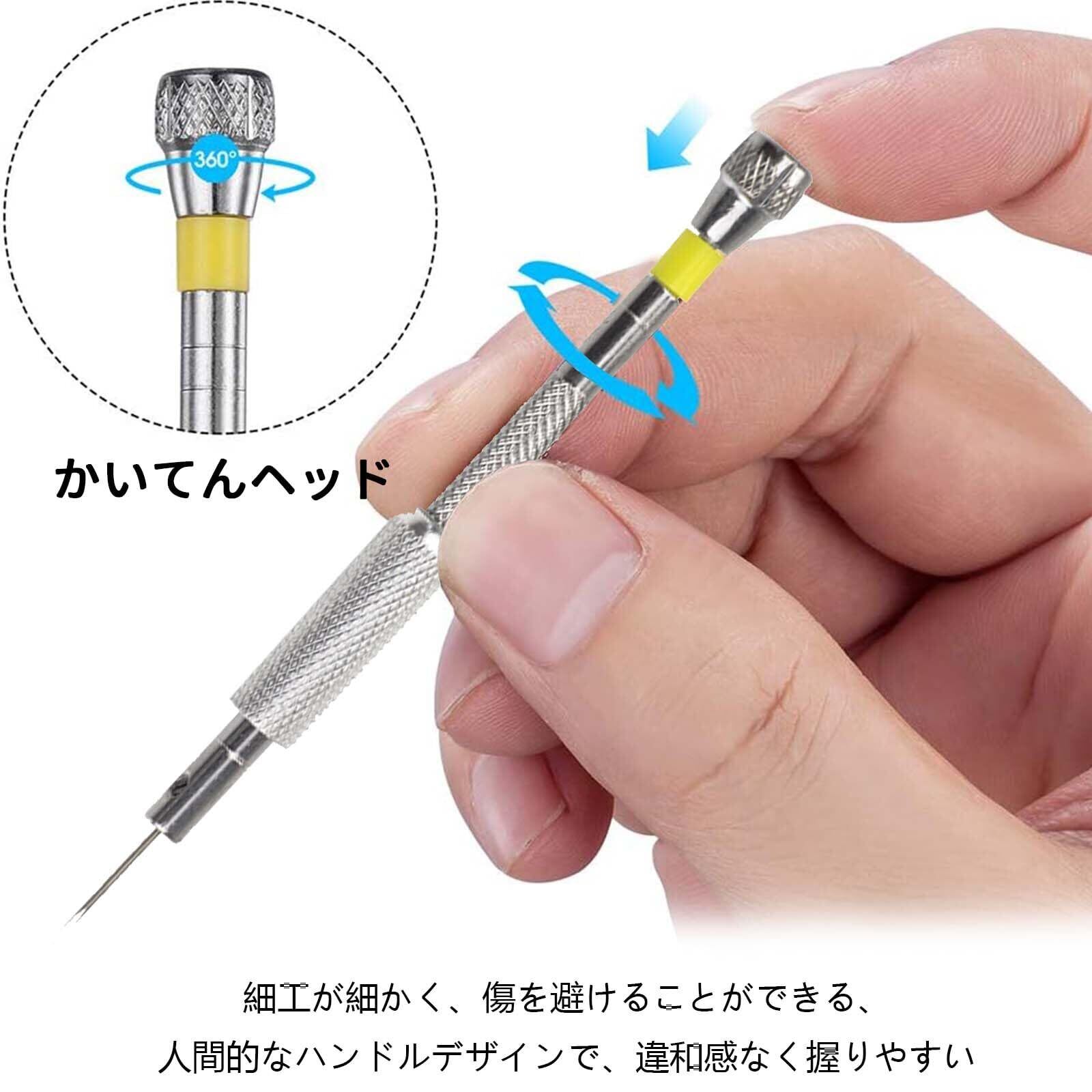 【精巧な仕上がり】時計用ドライバー ビットが細く、小さなネジの取り外しと取り付けができ、物を傷つけにくい。 グリップの表面には繊細なテクスチャーが施され、スタイリッシュで滑りにくく、快適に使用できます。 ネジの迅速な運転のために上部に回転可能なナット。