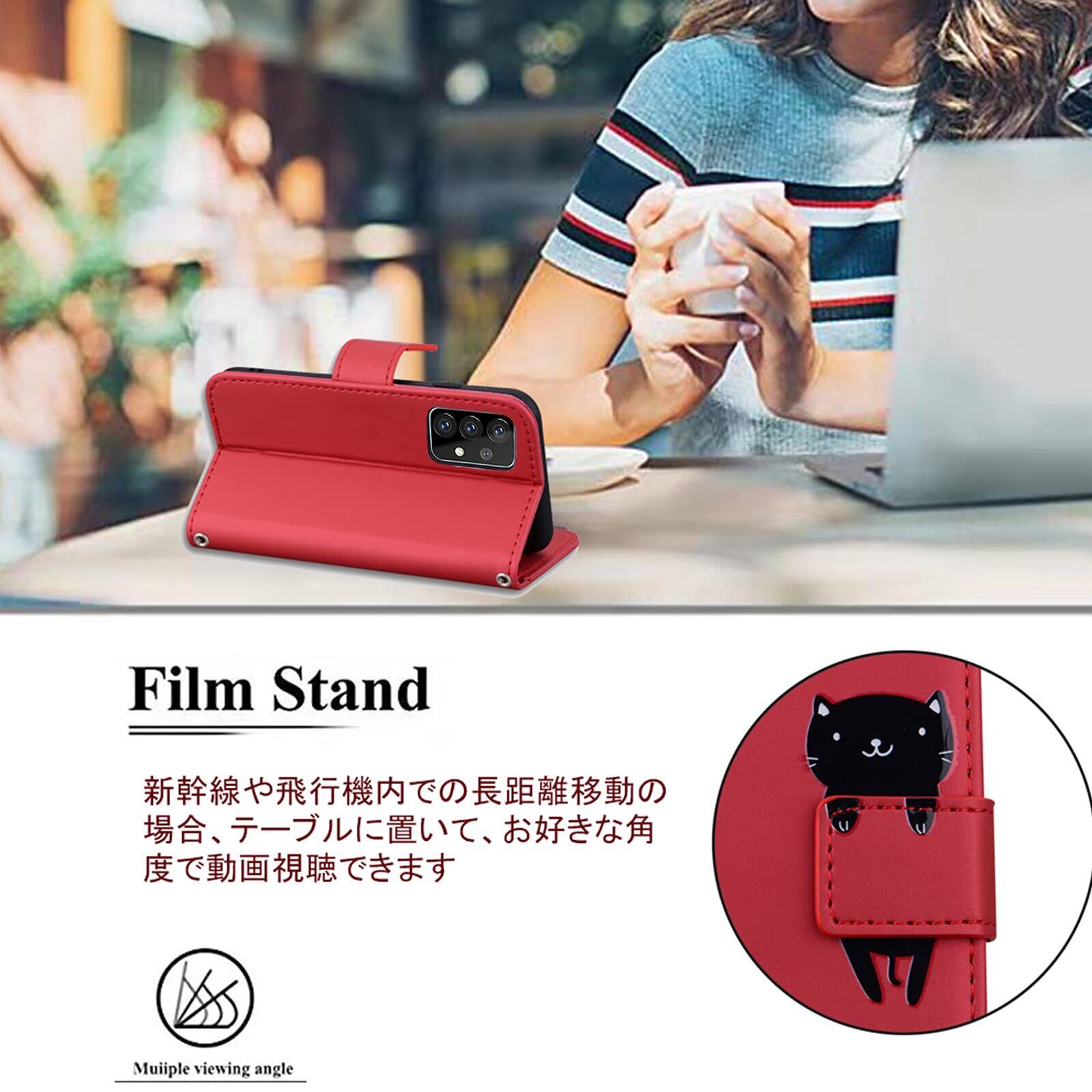 SUMSUNG Galaxy A52 5G SC-53B ケース 手帳型 スマホケース サムスン ギャラクシー a52 5g sc53b手帳型ケース カバー 可愛い キャラクター 携帯ケース スマホケース 携帯カバー レザー 柔らかいTPUケース 肌触り良い革 スマホけーす ケータイケース カード収納 財布付き カードホルダー ベルトマグネット スタンド機能 猫 かわいい 動物柄 薄型 防水 ノート型 人気 おしゃれ 男女兼用 Galaxy A52 5G SC-53B対応 レッド