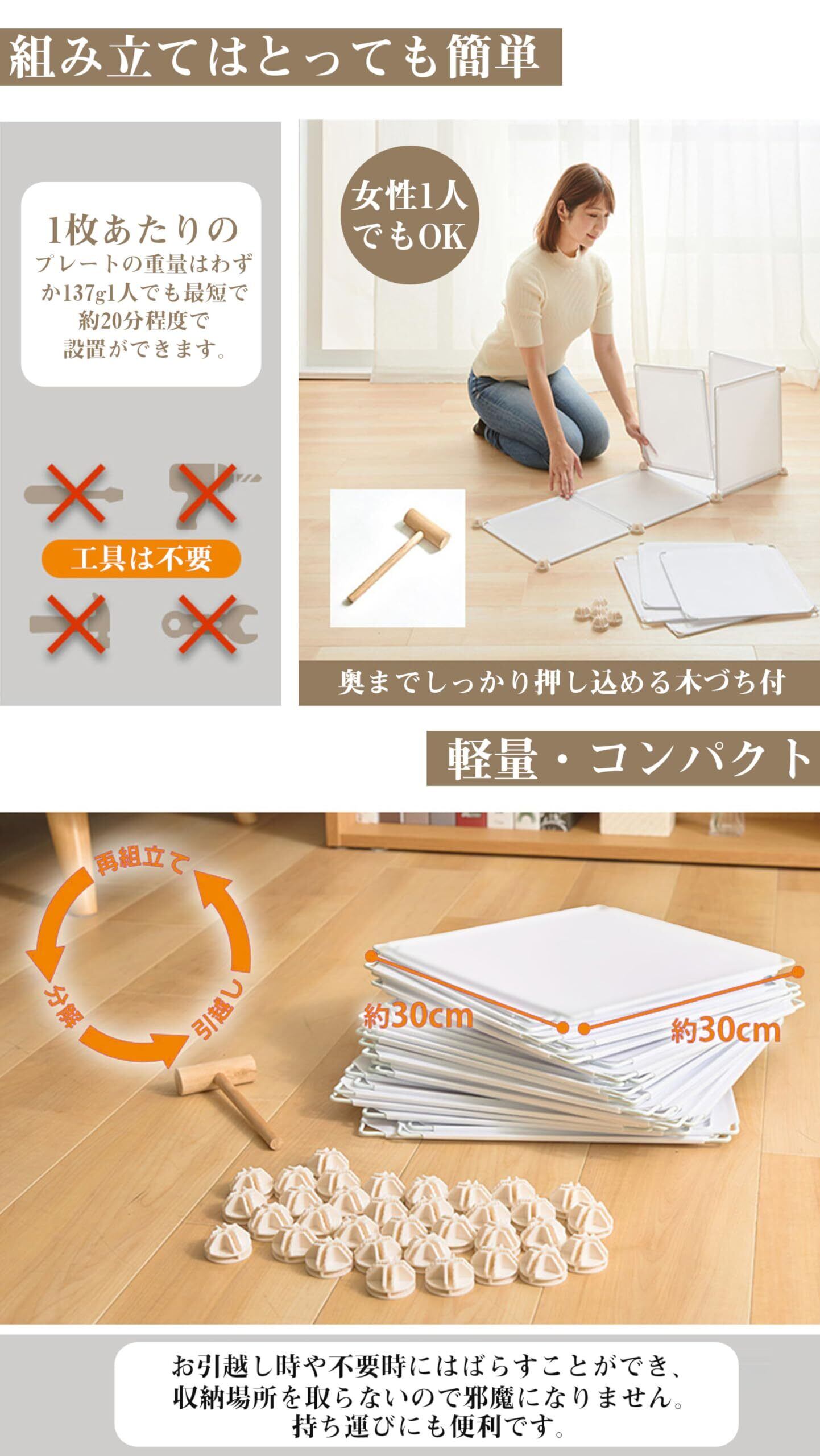 【組み立て簡単&自由度の高い収納ラック】用途に合わせて多様な収納スペースに対応することができ、コーディネートの楽しみが広がる。ねじを使う必要がなく、組み立てが簡単です。連結部材に棚板をはめ込むだけなので、女性一人でも簡単に組み立てることができます。自由度の高い収納ラックです。お好みにより、ラックの組合せがカスタマイズできます。