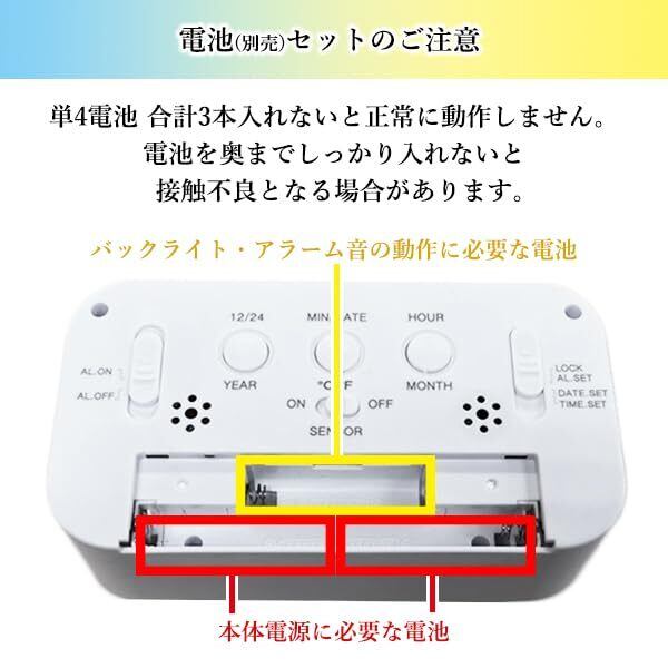 ・大きな字がとても見やすい。時刻以外に日付や温度の表示もあります。 ・暗くなると、バックライトが優しく自動点灯。 ・スヌーズ機能でしっかり目覚める。 【商品仕様】 カラー ホワイト