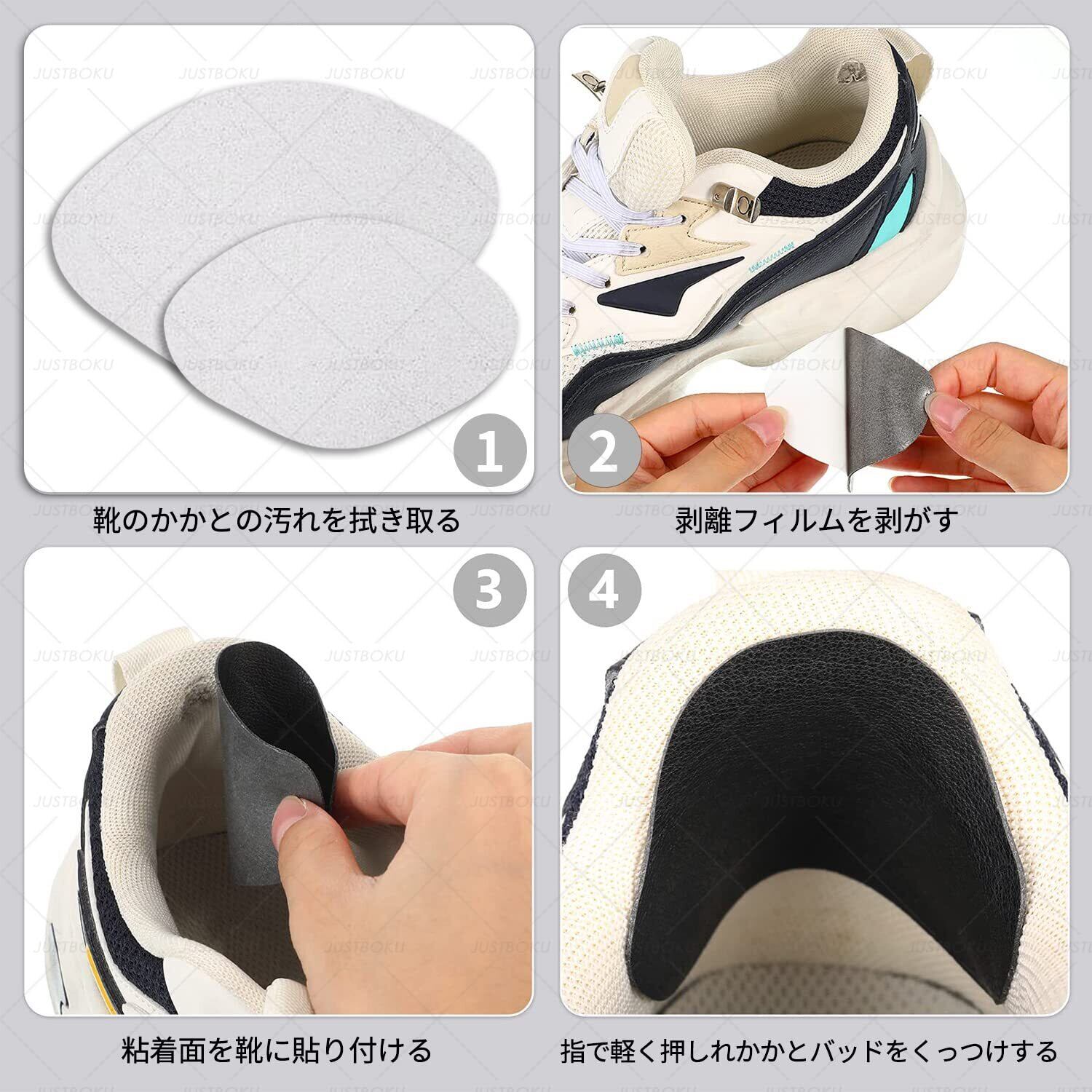 JUSTBOKU 靴 かかと 補修 踵 補修 内側 スニーカー かかと内側補修 かかと修理 パッチ 靴かかと修理キット かかと破れ補修 シューズ 内側かかと補強 4足8枚セット