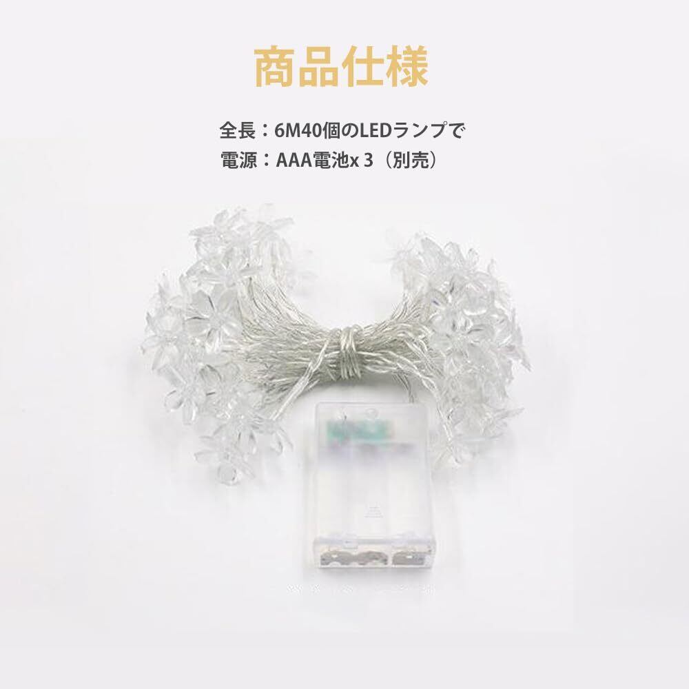 GOODCHI フェアリーライト電飾led イルミネーションライト 可愛くて小さなボール 電池式 ワイヤーライト 6M40個 LEDライト 防水 クリスマスオーナメント 結婚式 誕生日 キャンプ用 パーティー電飾 (桜の花)