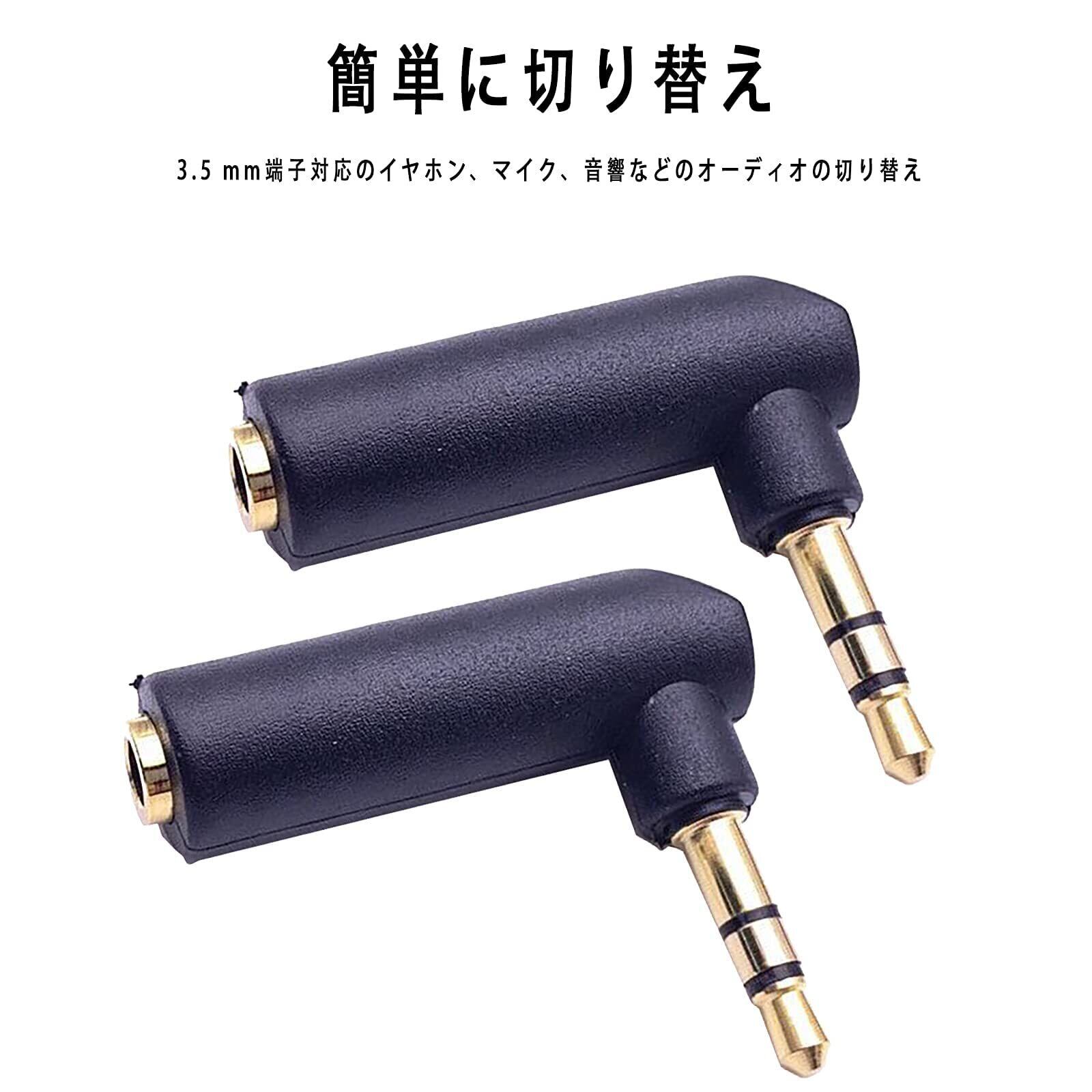 【マイク機能】ステレオ二重チャンネル直角変換アダプタステレオミニプラグ(φ3.5mm オス 3極) +ステレオミニプラグ(φ3.5mm メス 3極) L型 変換アダプタ、マイク付きイヤホンに接続すれば、マイクで通話できます。幅広い交換性:スピーカー、イヤホン、ヘッドホン、MP3プレーイヤー、iPhone、ートPC等3.5mm端子付きデバイスに対応できます。