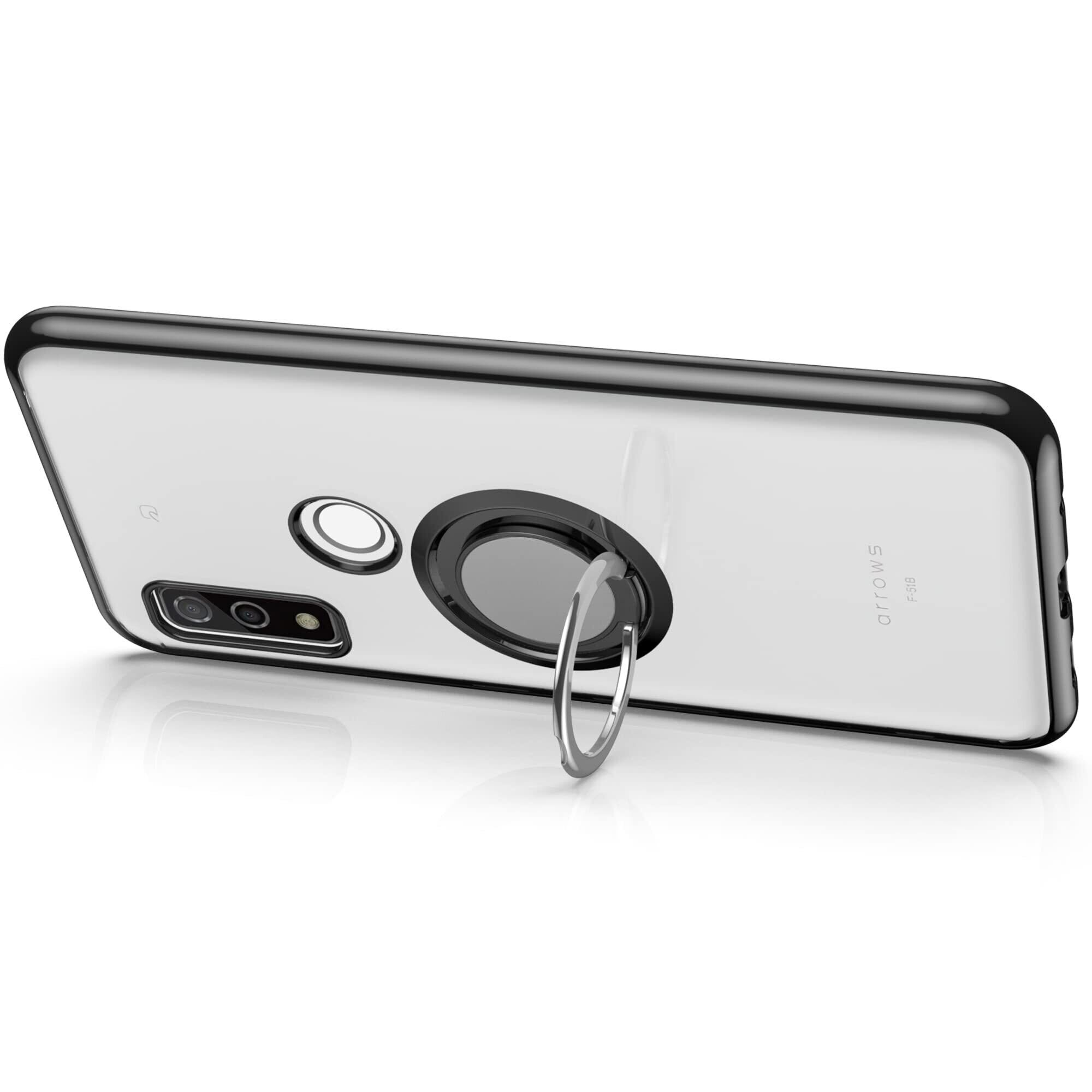 arrows We F-51B FCG01 用 リング付きクリアケース クリア x シルバー ソフトケース TPU保護ケース スタンド機能付き 360回転 カバー 耐衝撃 透明 TPU 素材 超薄型 背面カバー 超軽量 耐衝撃 落下防止