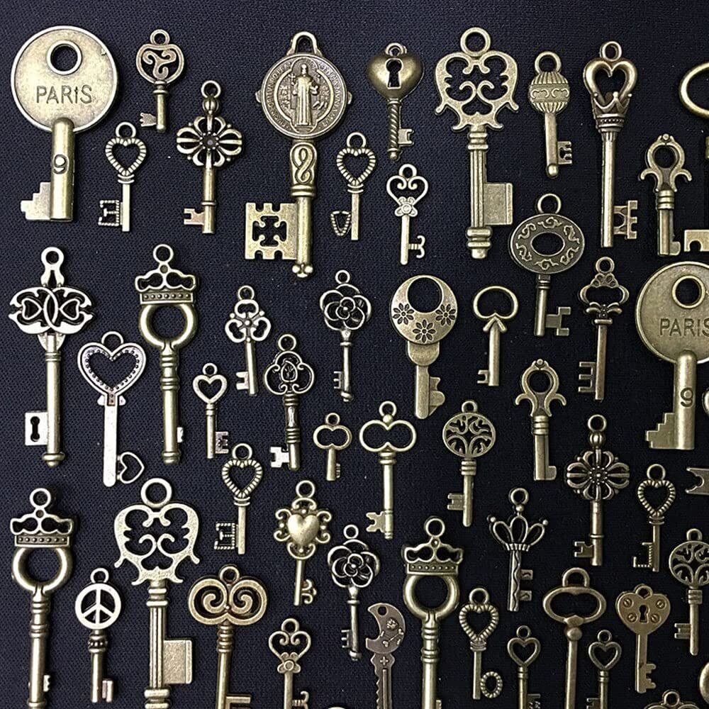 [YINKE] キー チャーム アンティーク調 スケルトンキー 鍵 DIY 金古美 ハンドメイド ハンドメイド アクセサリー 飾り レトロ 120個