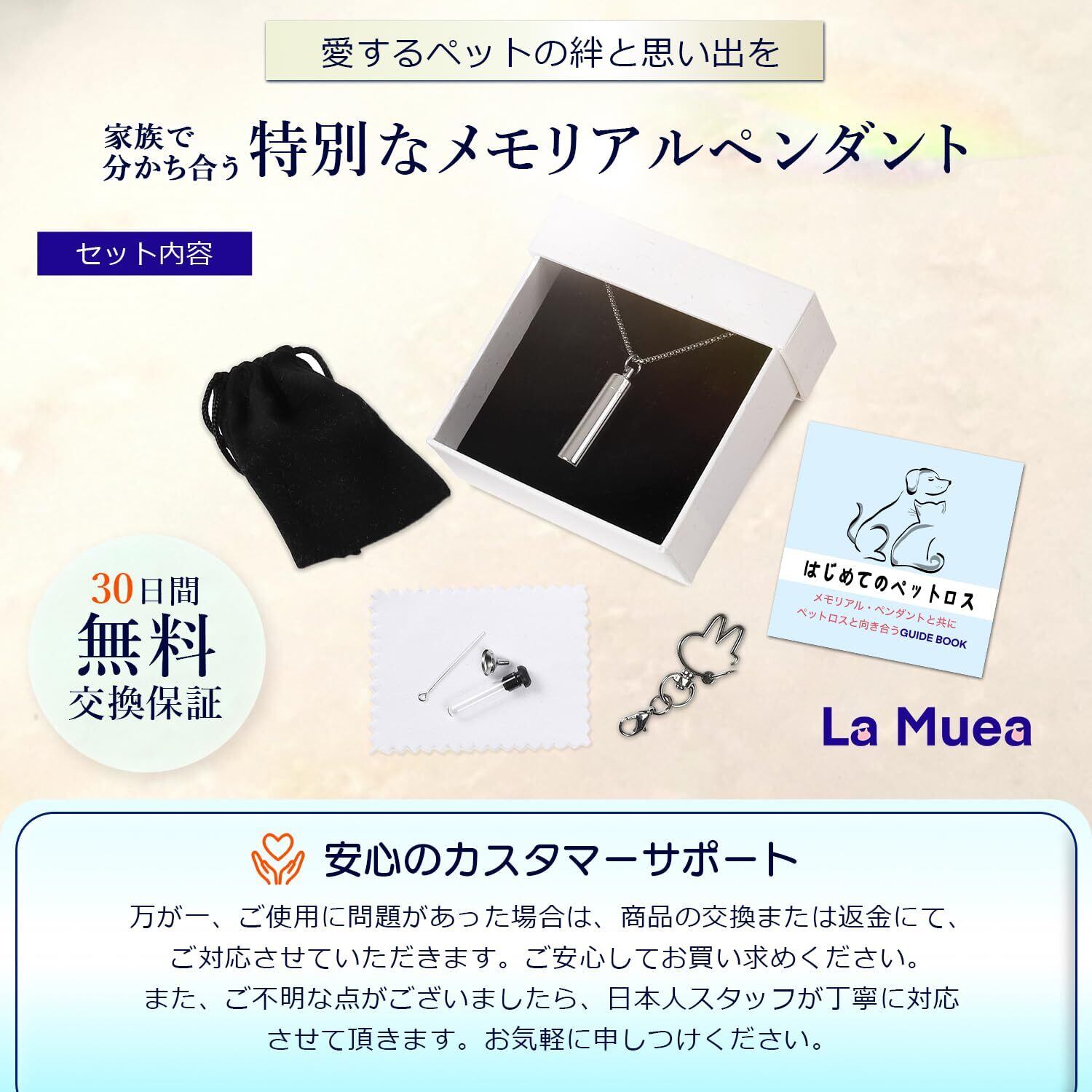 メモリアルペンダント本体 カラビナ(動物型キーホルダー) 専用収骨キット(ろうと) メガネ拭き 巾着袋 ガイドブック(ご利用ガイド)「はじめてのペットロス」 専用収納BOX