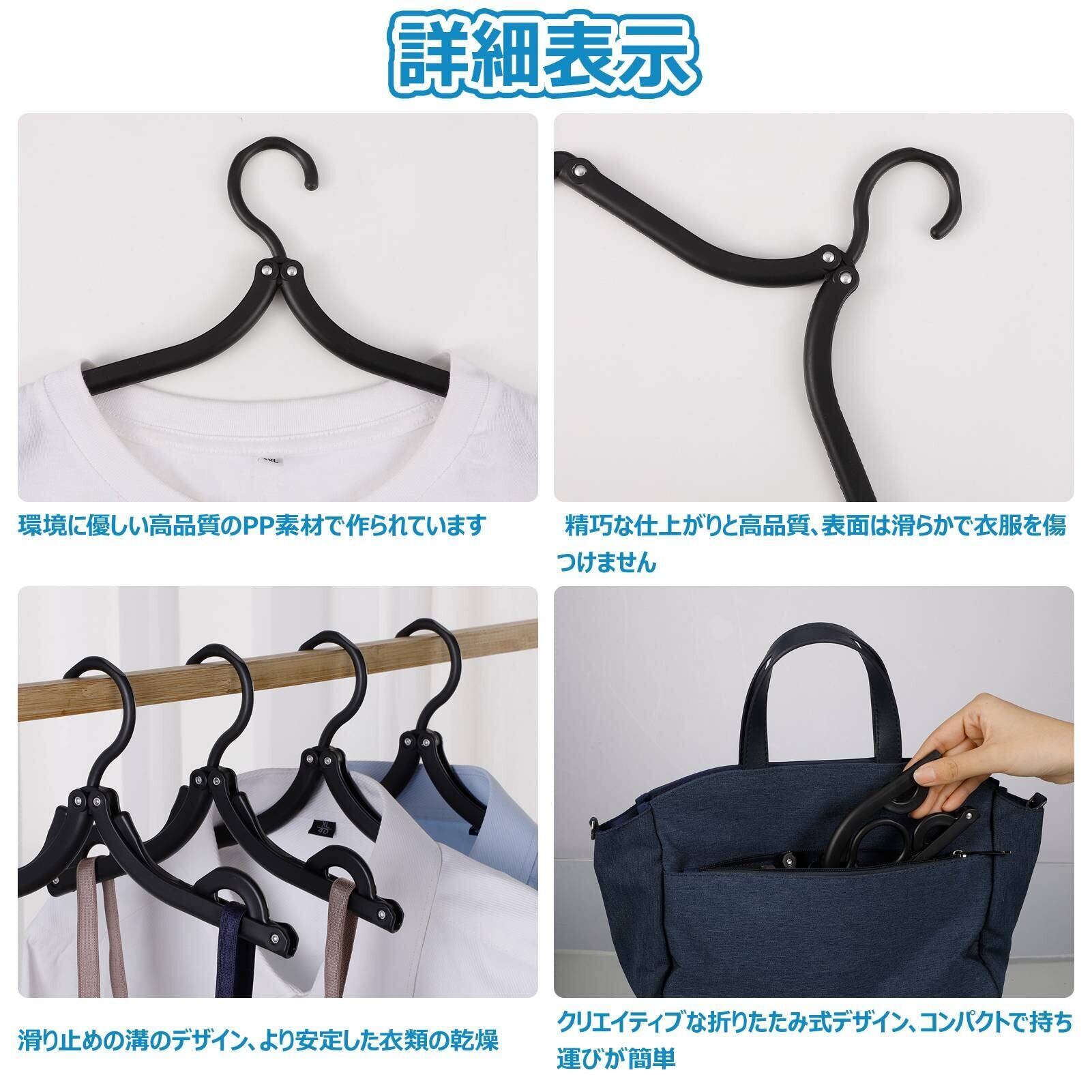 【商品詳細】セット:ハンガー9個、カラー:ブラック。外旅行や国内旅行、出張やアウトドア、家庭用などで大活躍する機能的な折りたたみハンガーです。