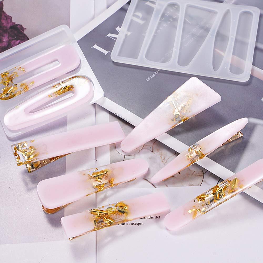 Smilerain ヘアピン シリコンモールド レジン ヘアクリップ モールド uv レジン セット レジン かた 型 半透明 オリジナルギフト 4セット 金具クリップ12個付き