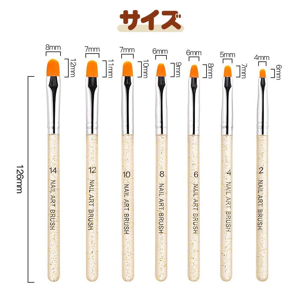 【7サイズ】毛先の大きさがそれぞれ違うブラシは7本揃っています。広くぬりたい時や細かい柄を描きたい時、仕上がりたい効果に合わせてブラシを選べます。