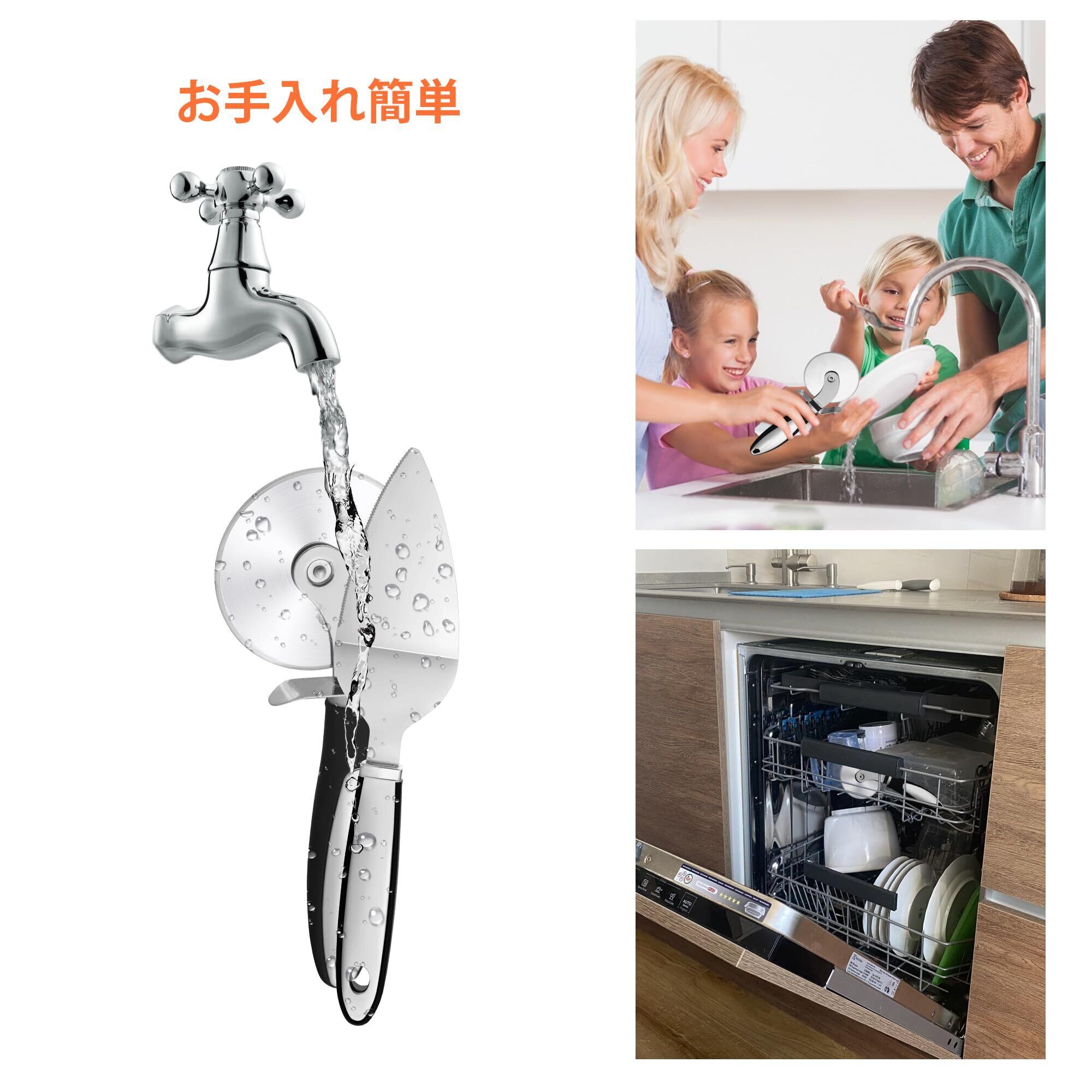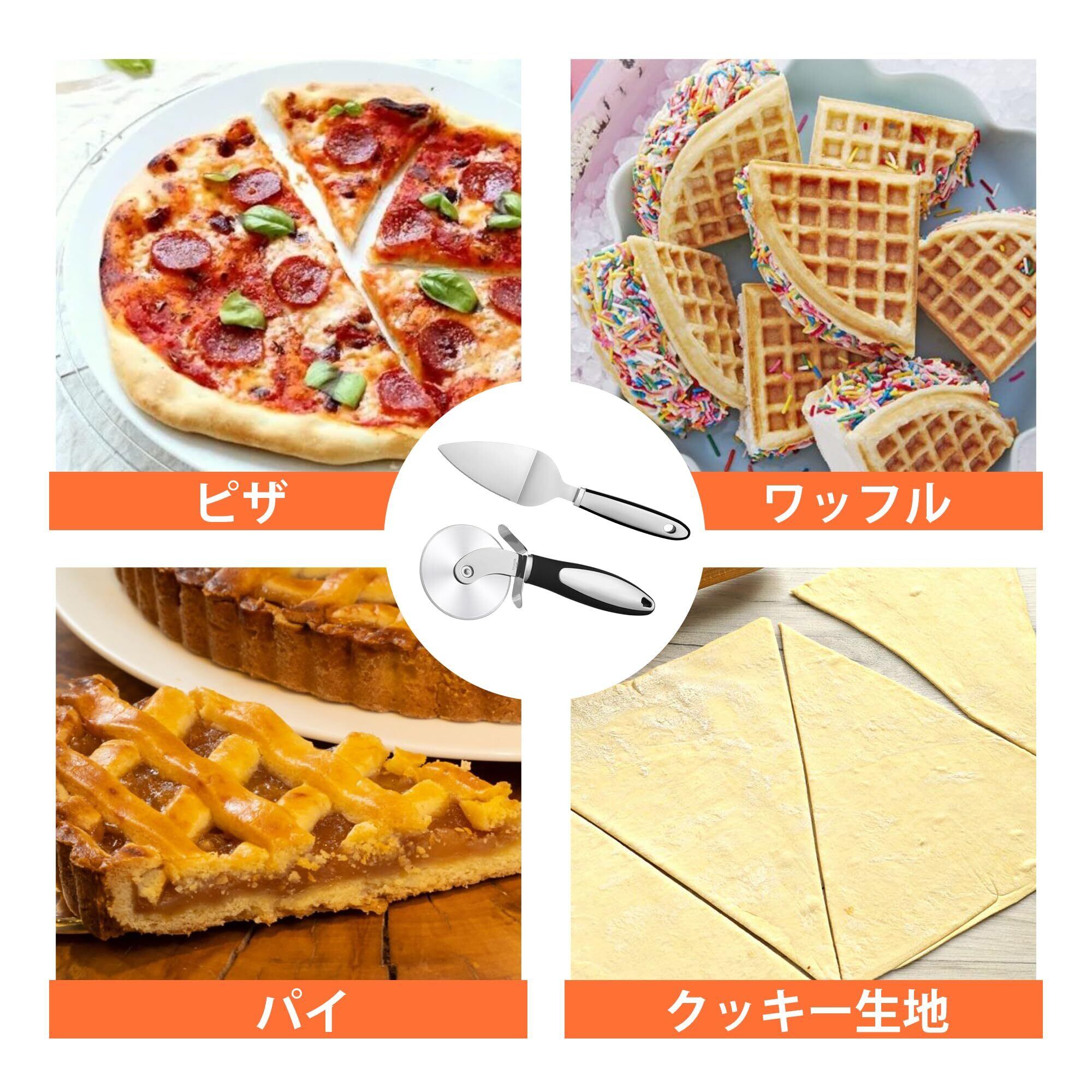 ピザカッター ピザナイフ ピザ切り ケーキサーバー パイサーバー 調理器具 キッチン用品 ステンレス製 指保護装置 滑りにくいハンドル 切り分け 業務用 家庭用 食洗機対応 2点セット