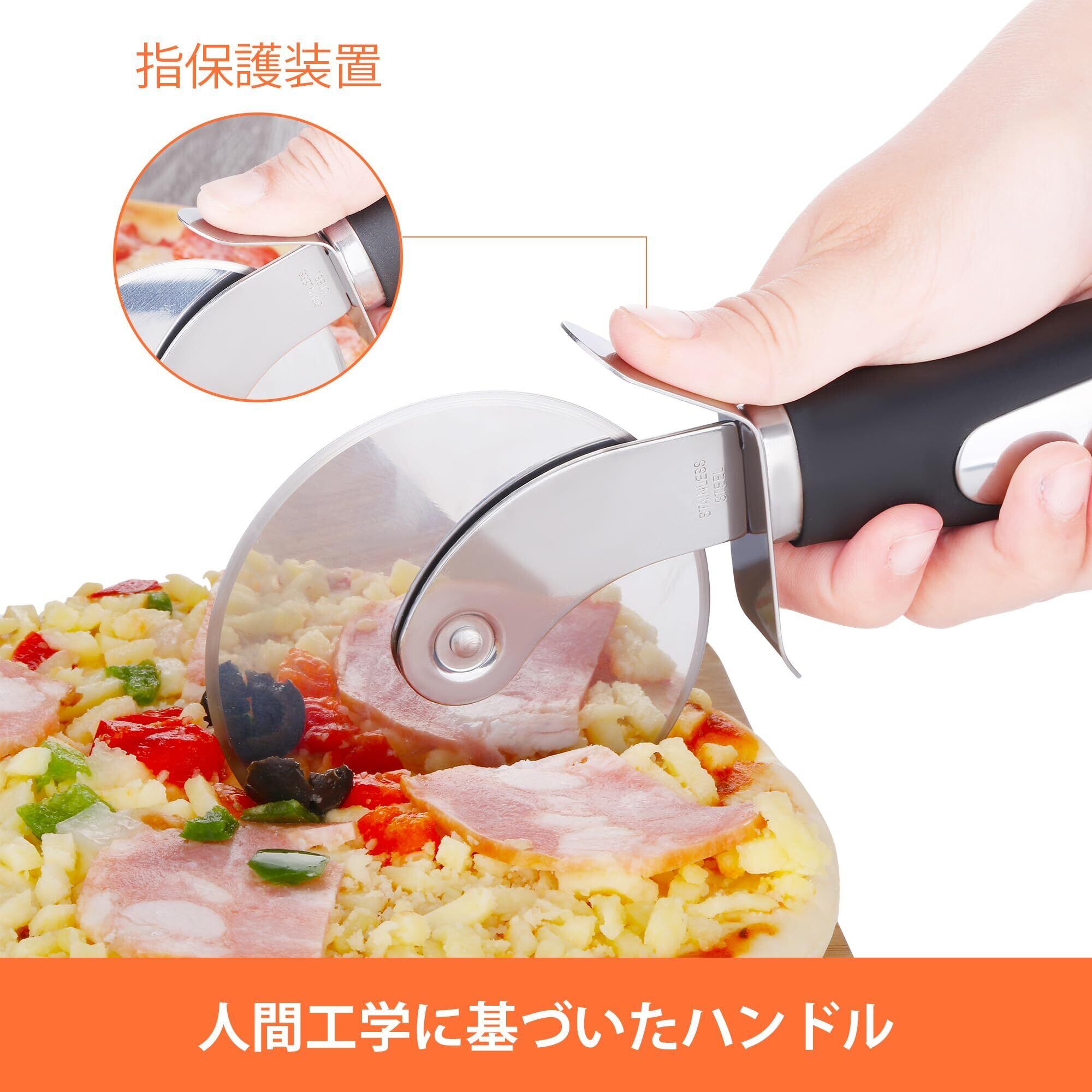 【幅広い使い方】このピザカッターは、キッチンで幅広く活用することができます。本製品を使えば、綺麗にピザをカットできるだけでなく、生地、パイ、ワッフル、クレープ、生地ビスケットなどにも適しています。まさに料理の時間を楽しむ素敵なパートナーです。