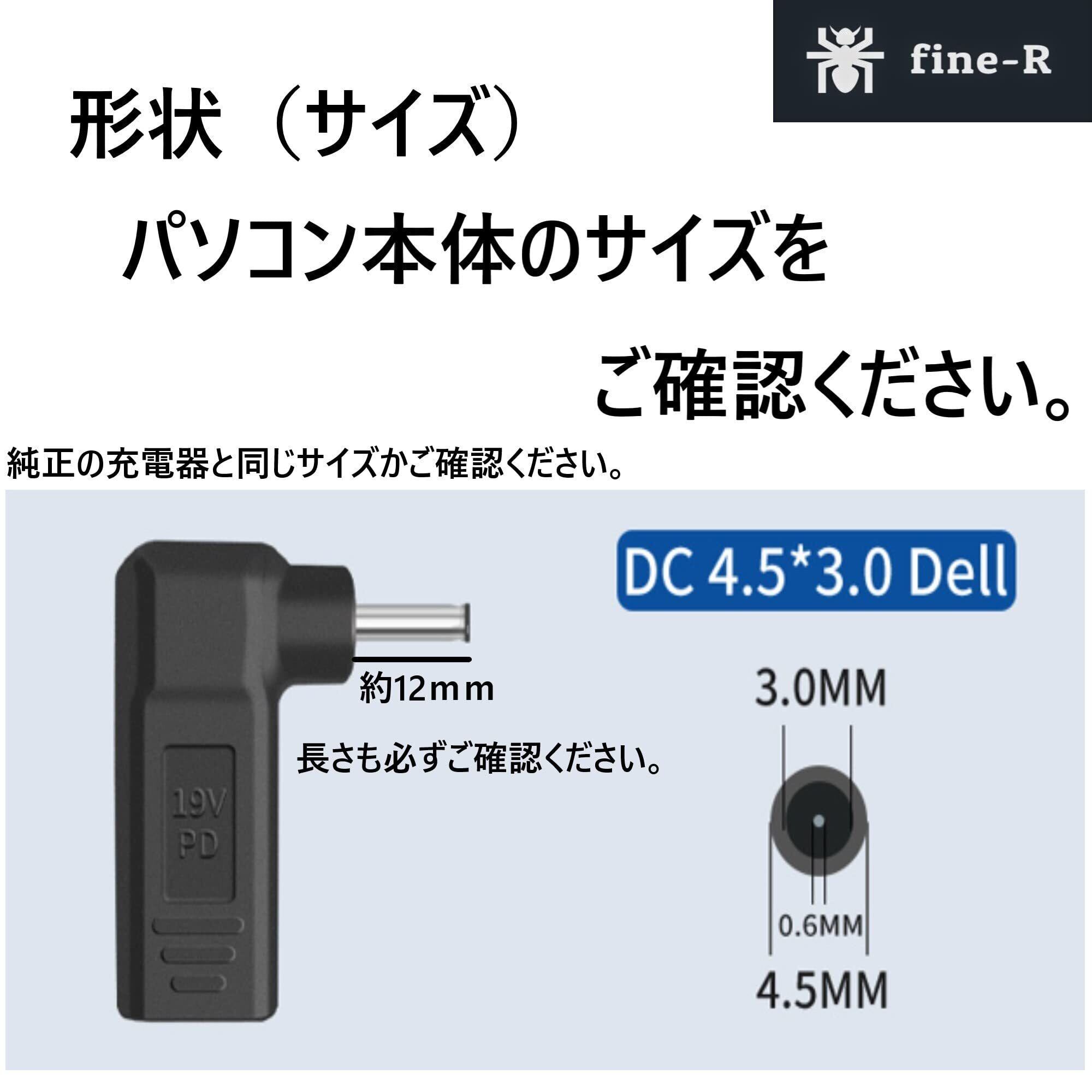 fine-R タイプC USB-C 入力 DC 4.5×3.0mm DELL 専用 (他サイズあり) 変換 ヒューレットパッカード ノートパソコン 充電 PD 充電 日本検品済 TYPE-C 変換アダプター プラグ AC充電 PL保険加入品(P 4530DELL)