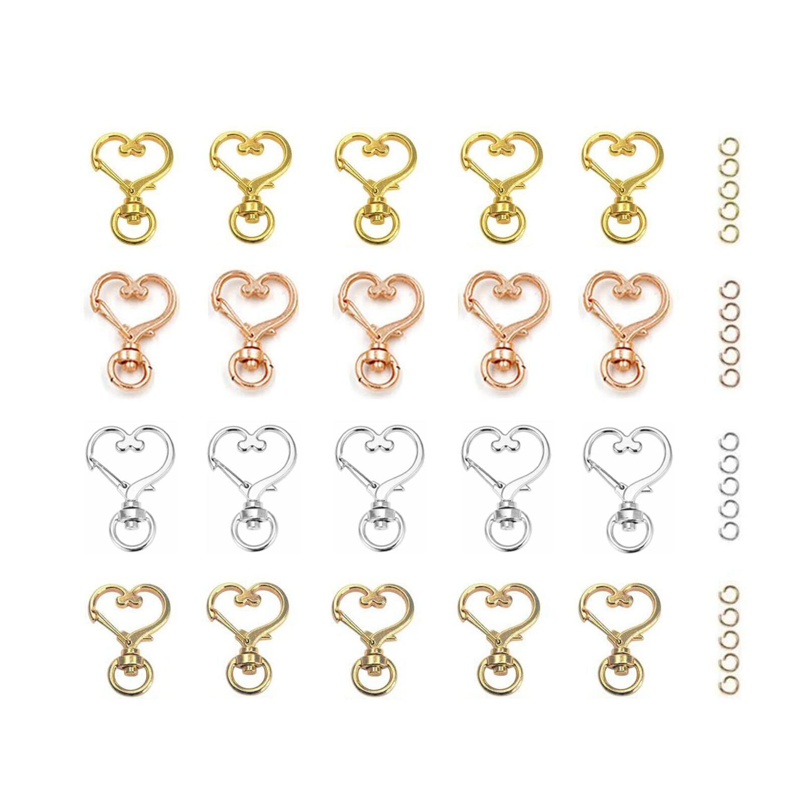 YFFSFDC キーホルダー金具 20個 回転カン付き ワンタッチキーホルダー カワイイ DIY用パーツ 手作り キーリング シルバー ゴールドなど4色