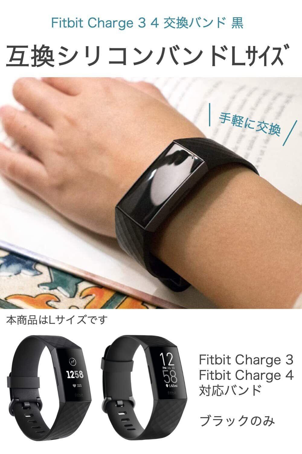 wumio Fitbit Charge 3 4 交換バンド 黒 Lサイズ 互換品 交換用 シリコン TPU スマートウォッチ フィットビット チャージ シリコンバンド 交換ベルト 消耗 予備