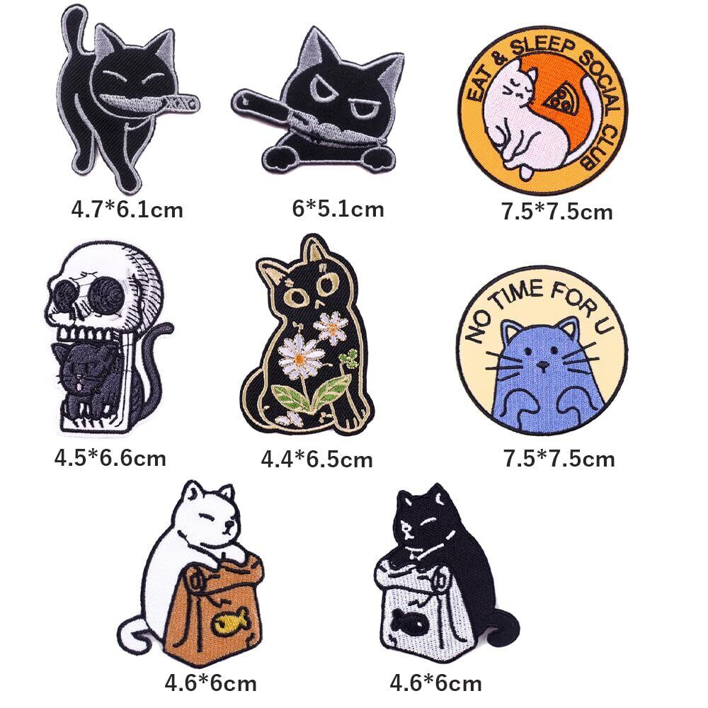 DFsucces アイロンワッペン 人気セット 猫 かわいい 刺繍パッチ 補修 ワッペン 貼り付けまたは縫い付け パッチステッカー DIY 補修 手作り (8枚セット)