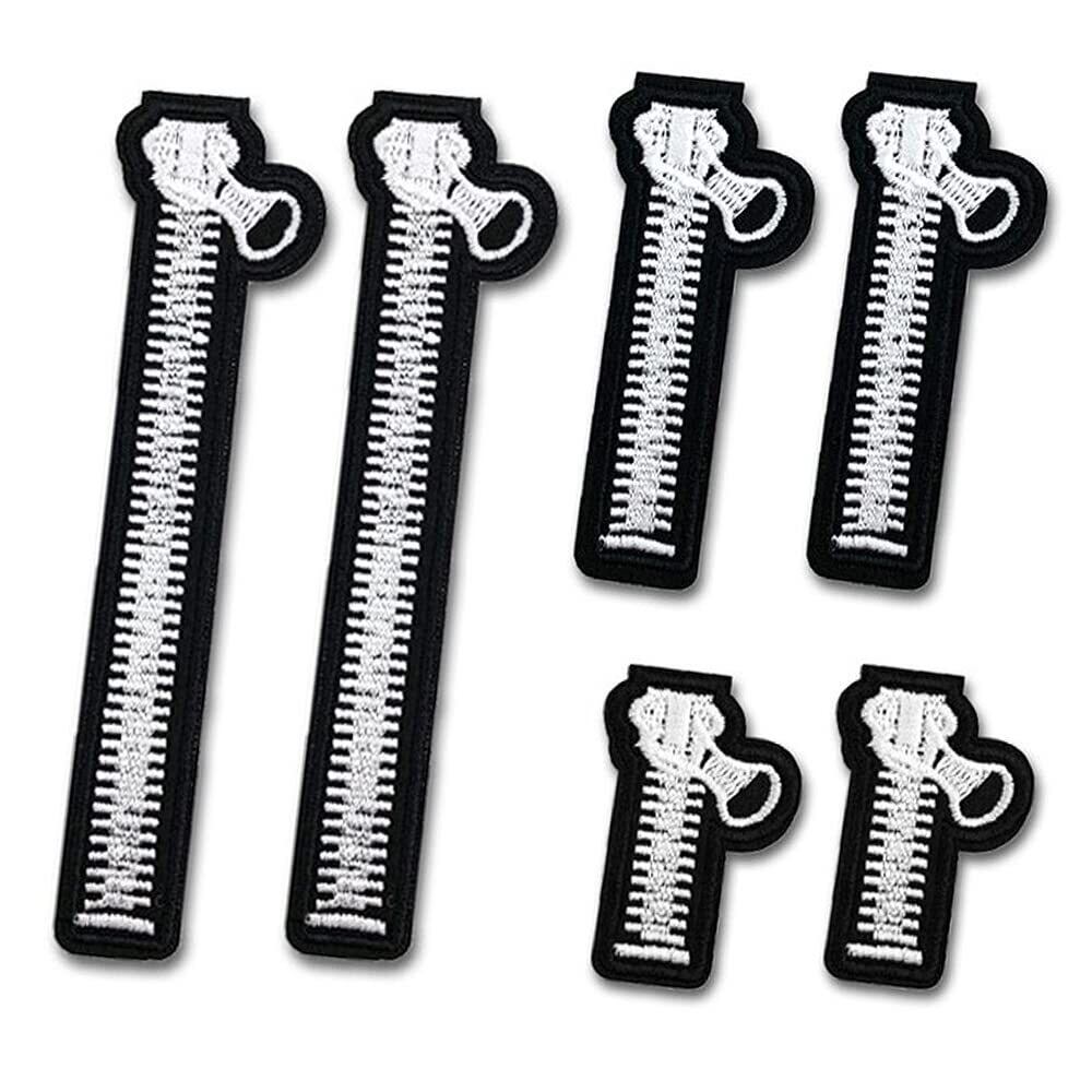 ファスナー ワッペン 6枚セット 大中小 ジッパー チャック 刺しゅうワッペン ししゅう アップリケ パッチ アイロン接着 縫い付け アイロンワッペン 補修 DIY 手芸 幼稚園 保育園 (大中小)