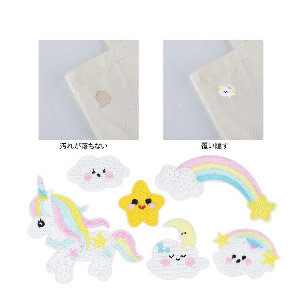 ワッペン アイロン刺繍 アップリケ DIY服 動物 モチーフ ユニコーン 雲 虹 星 可愛い装飾 保育園 幼稚園 パッチ 補修 小さいサイズ 6枚セット 衣類 浴衣 手袋 手帳 飾り