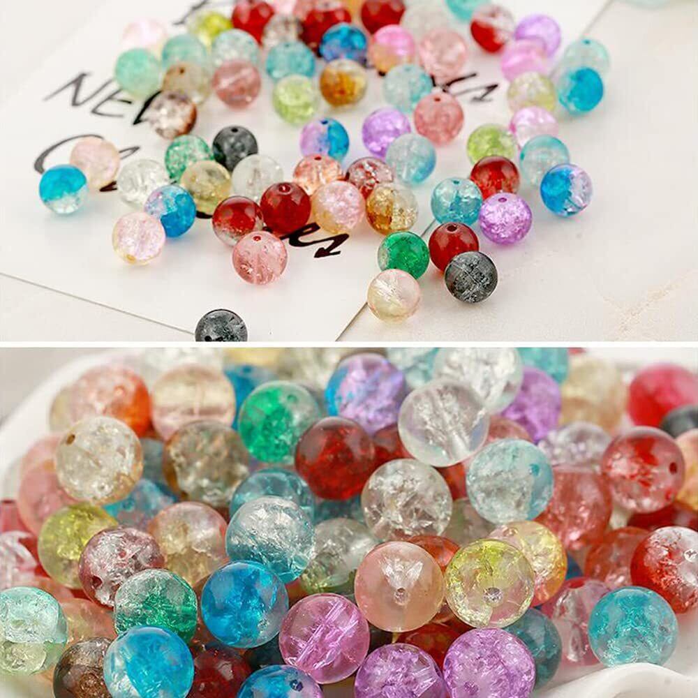 YFFSFDC ガラスビーズ 混色 ビーズ 約525個 ハンドメイドパーツ 4/6/8/10mm 4サイズアクセサリー材料 クラックビーズ レジン 手芸用品 DIY用