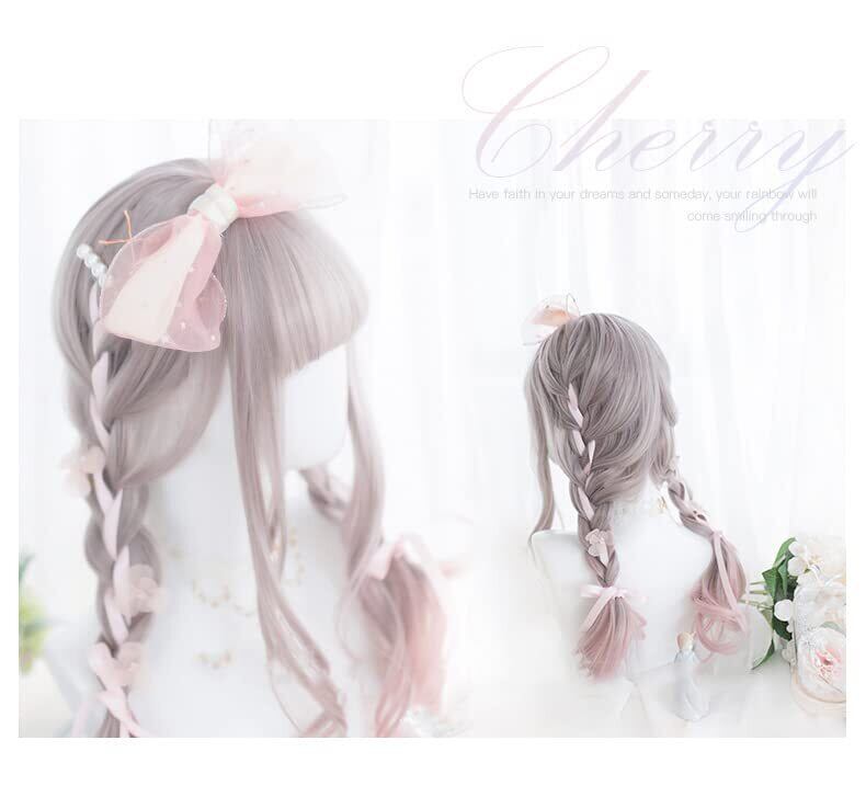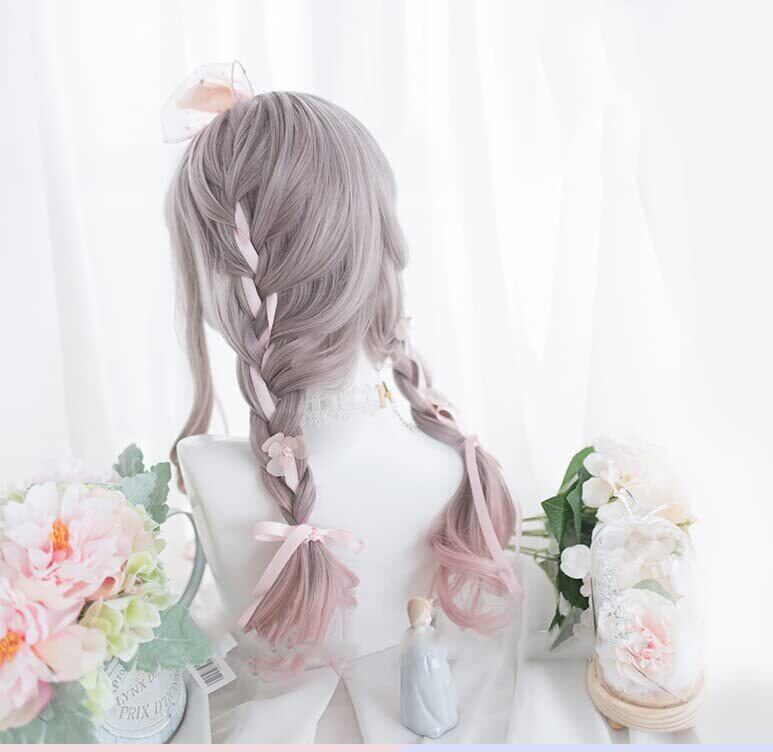 原宿風 GAL系 耐熱ウィッグ かつら カール ロング 巻き髪 グラデーション ウィッグ ロリータウィッグ パーティー ロリータlolita風 日常 コスプレ 小顔効果 (グレー ピンク)