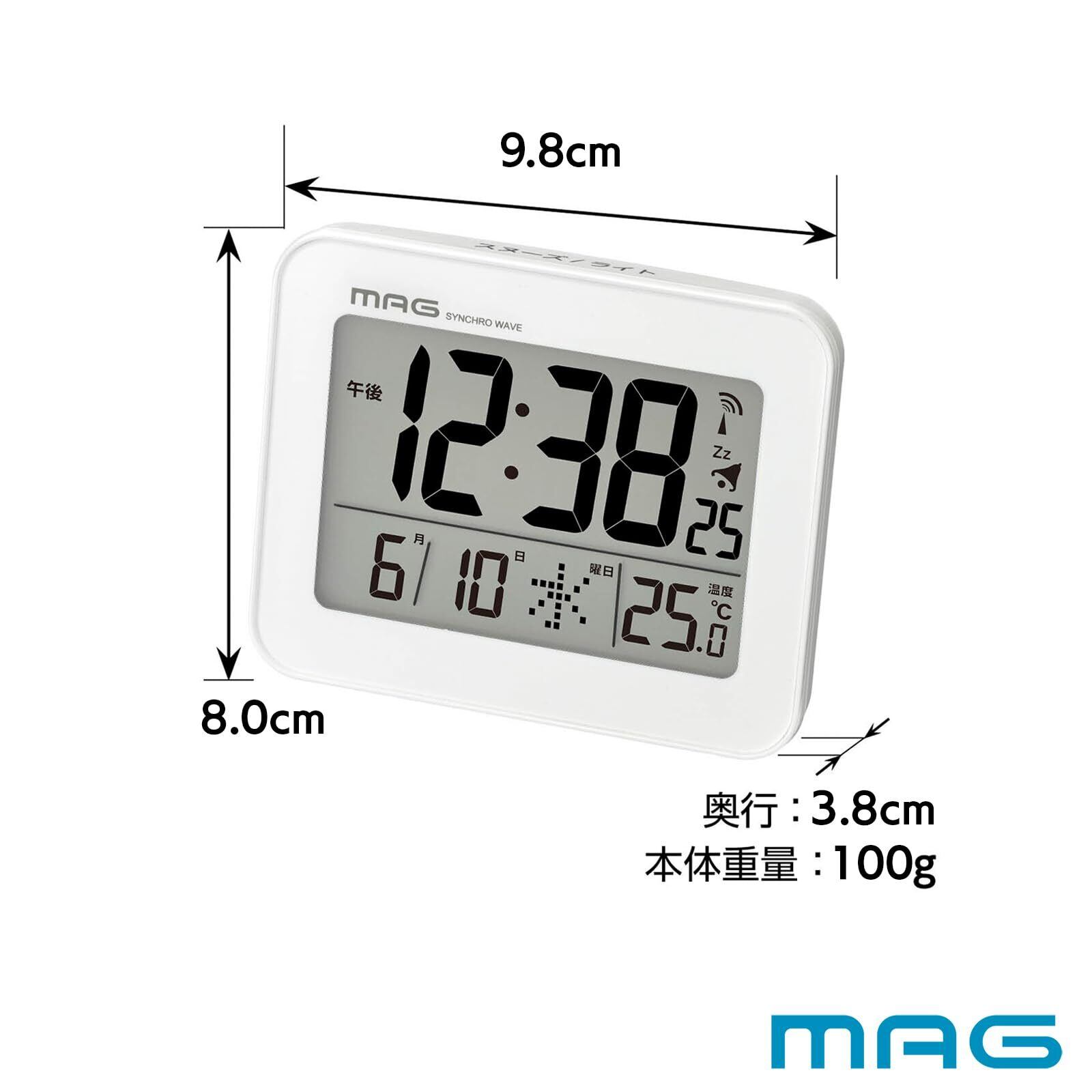 MAG(マグ) 目覚まし時計 電波 デジタル ファルマン バックライト スヌーズ機能付き ホワイト T-776WH-Z