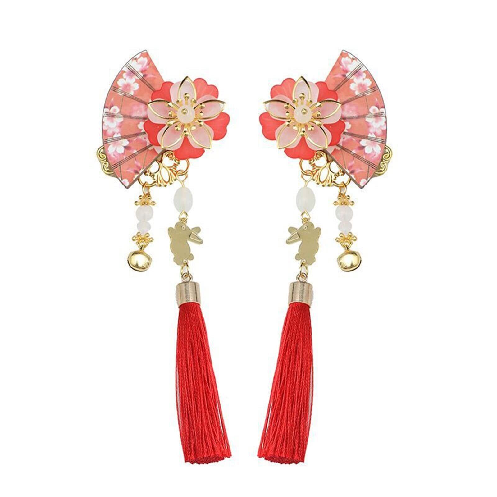 扇子 髪飾り タッセル 扇 花 ヘアクリップ 中華風 漢服 浴衣 和装 ヘアアクセサリー ヘッドドレス 子供髪飾り 入学式 卒業式 七五三 (赤)