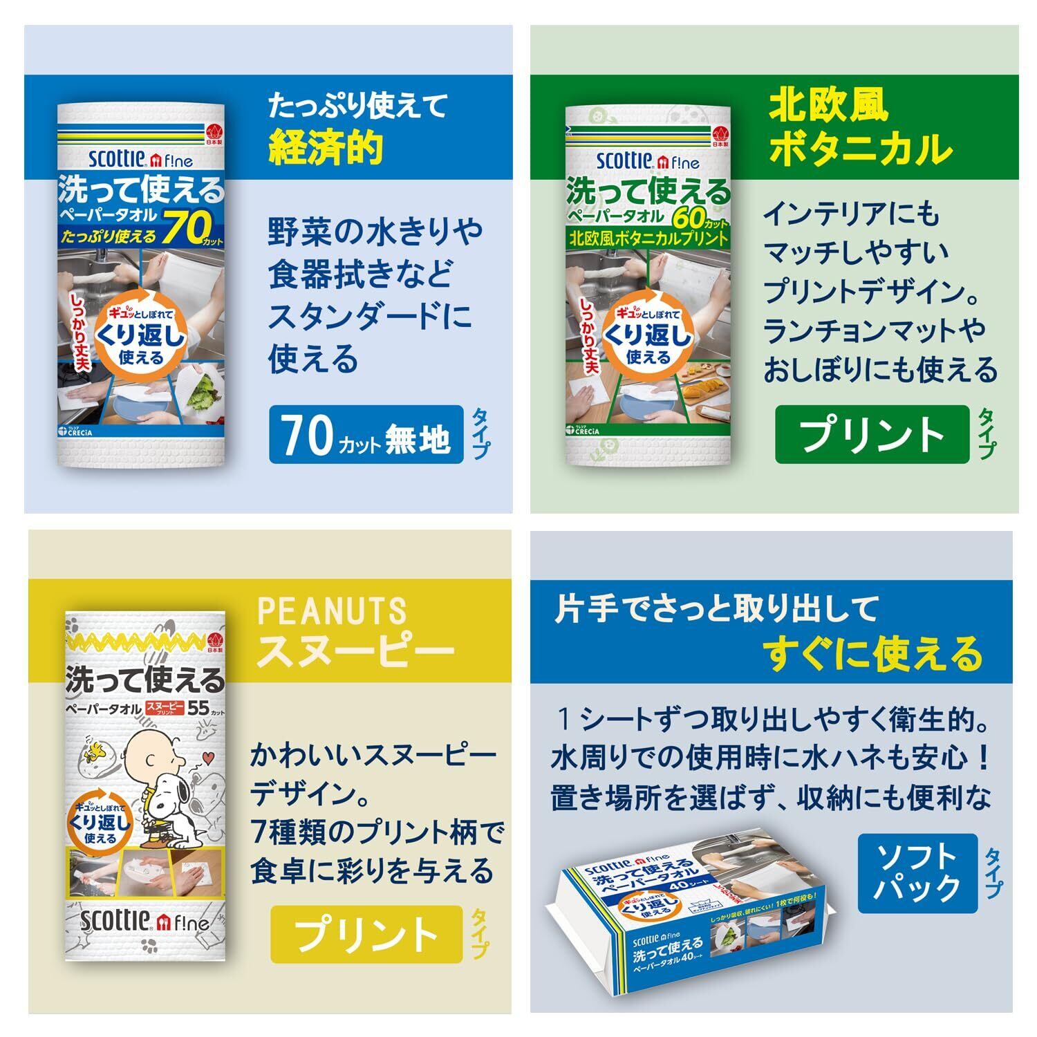 スコッティ ファイン 洗って使えるペーパータオル 強力厚手タイプ 47カットホワイト 1ロール